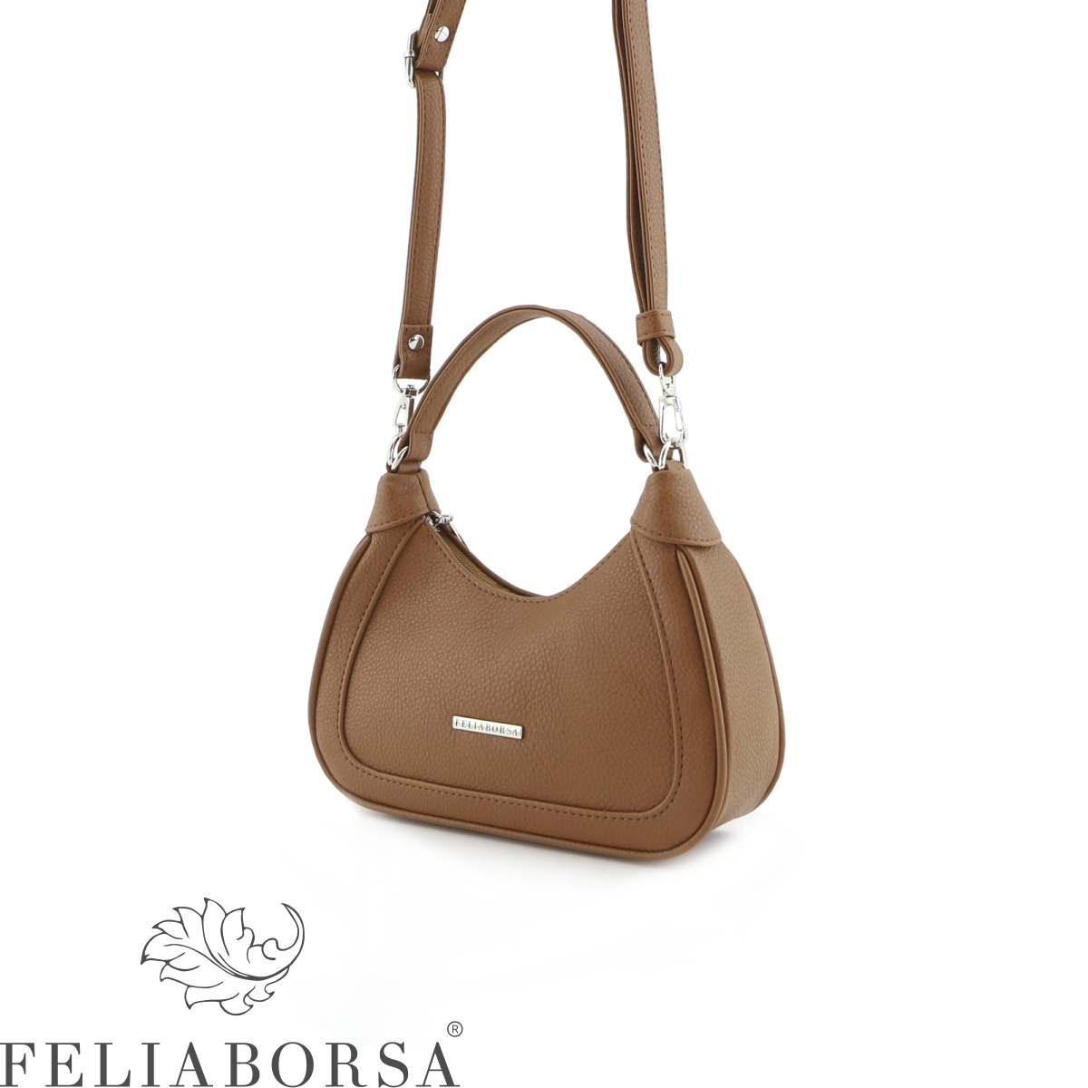 Сумка женская Feliaborsa, полужесткая на одной ручке и регулируемом ручкоремне. Одно отделение на молнии. Задняя стенка: карман на молнии.