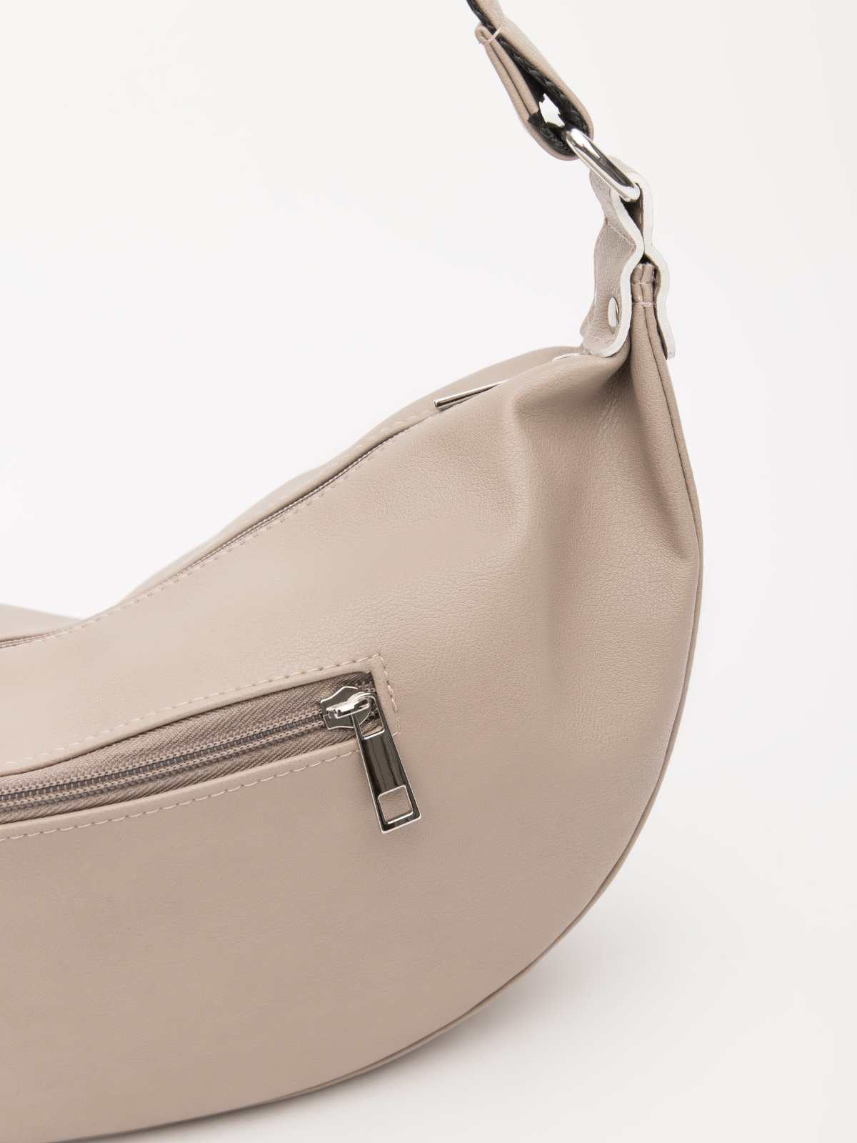 Практичные детали сумки: задний карман на молнии, удобная стропа для регулировки длины и мягкий крой, повторяющий изгиб тела.