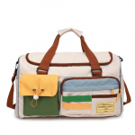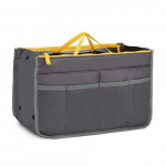 Внутри: одно большое отделение, внутри которого расположен карман на молнии для телефона, документов и различных мелочей. Сбоку у сумки имеется отсек для обуви. Сумка закрывается на молнию. В комплекте удлинённый чёрный ремень. На внешней задней стенке расположены лямка для крепления сумки на тележку или туристический чемодан на колёсах. На дне сумки расположены пластмассовые ножки для защиты и большей устойчивости.