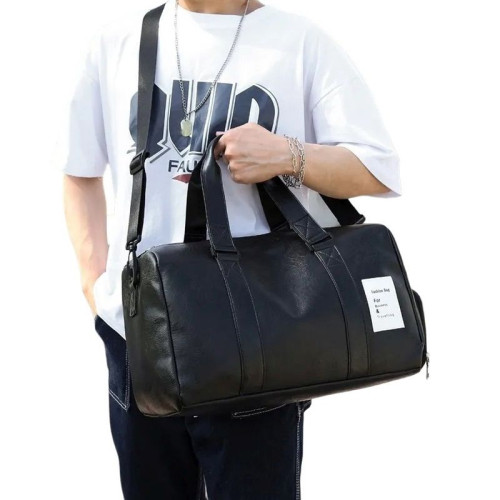 Внутри: одно большое вместительное отделение. По бокам расположены карманы на молнии и без для документов, телефона и различных мелочей. С внешней стороны сбоку имеется отделение для обуви. Сумка закрывается на молнию. В комплекте имеется удлинённый прочный ремень, регулируемый по высоте.