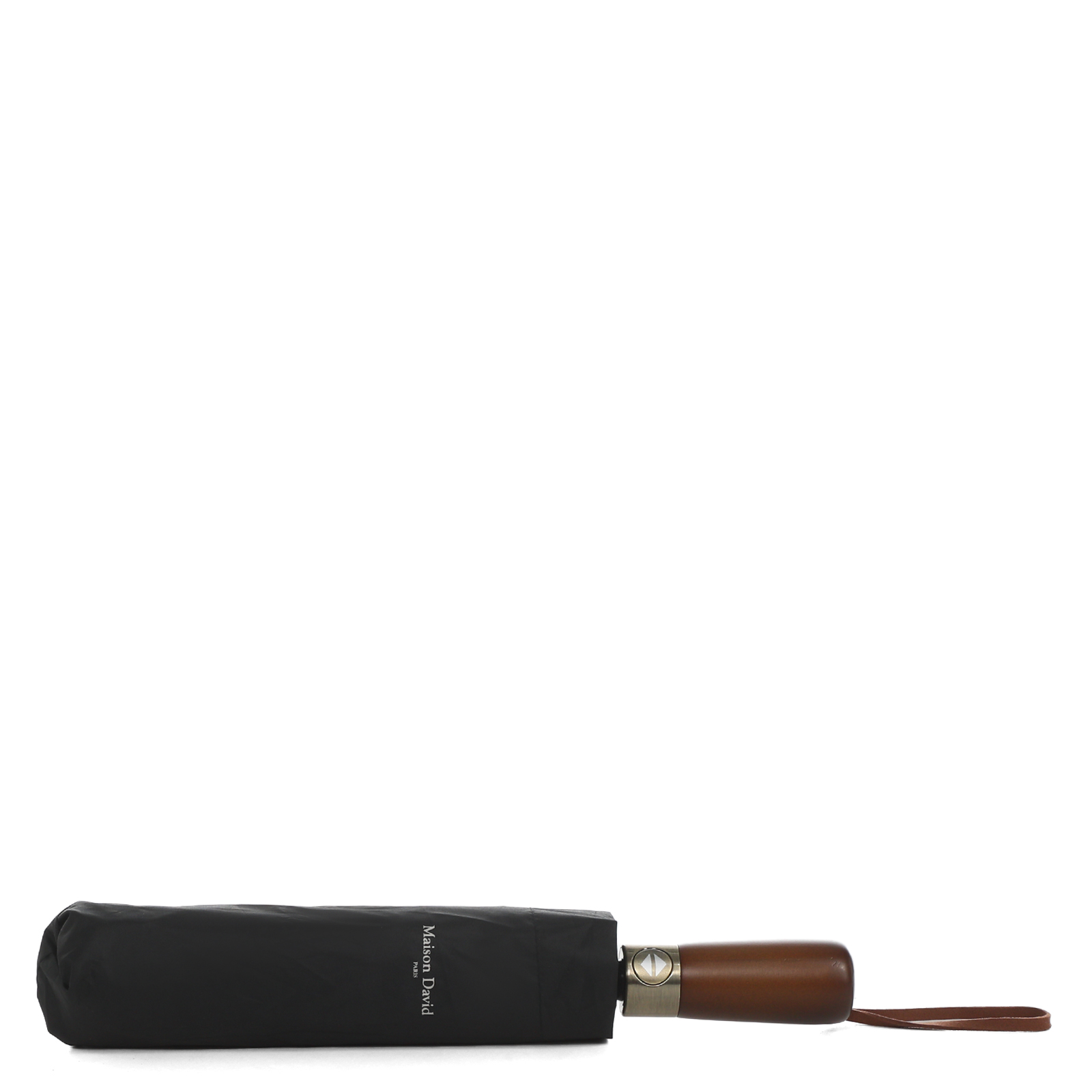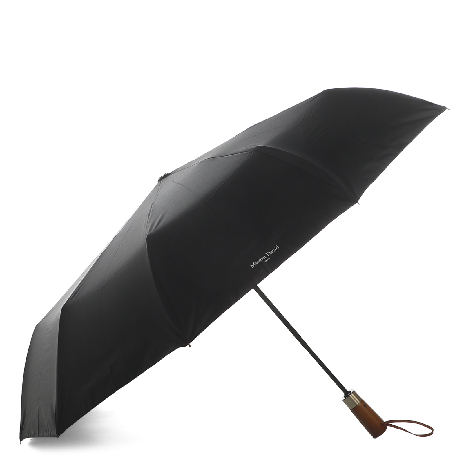 Зонт автомат Maison David с 10 спицами. Большой купол сделан из прочного текстиля эпонж 190T в два слоя. Вода не задерживается на материале, собираясь в капли и легко скатываясь с купола. Спицы из фибергласса и железа в сочетании с железным стержнем делают аксессуар надежным и долговечным. Зонт защитит даже от проливного дождя с ветром. Округлая деревянная ручка с брендовой гравировкой удобно лежит в руке. Зонт можно носить на запястье или повесить на вешалку с помощью кожаного шнурка-петли. В комплекте есть текстильный чехол для хранения.