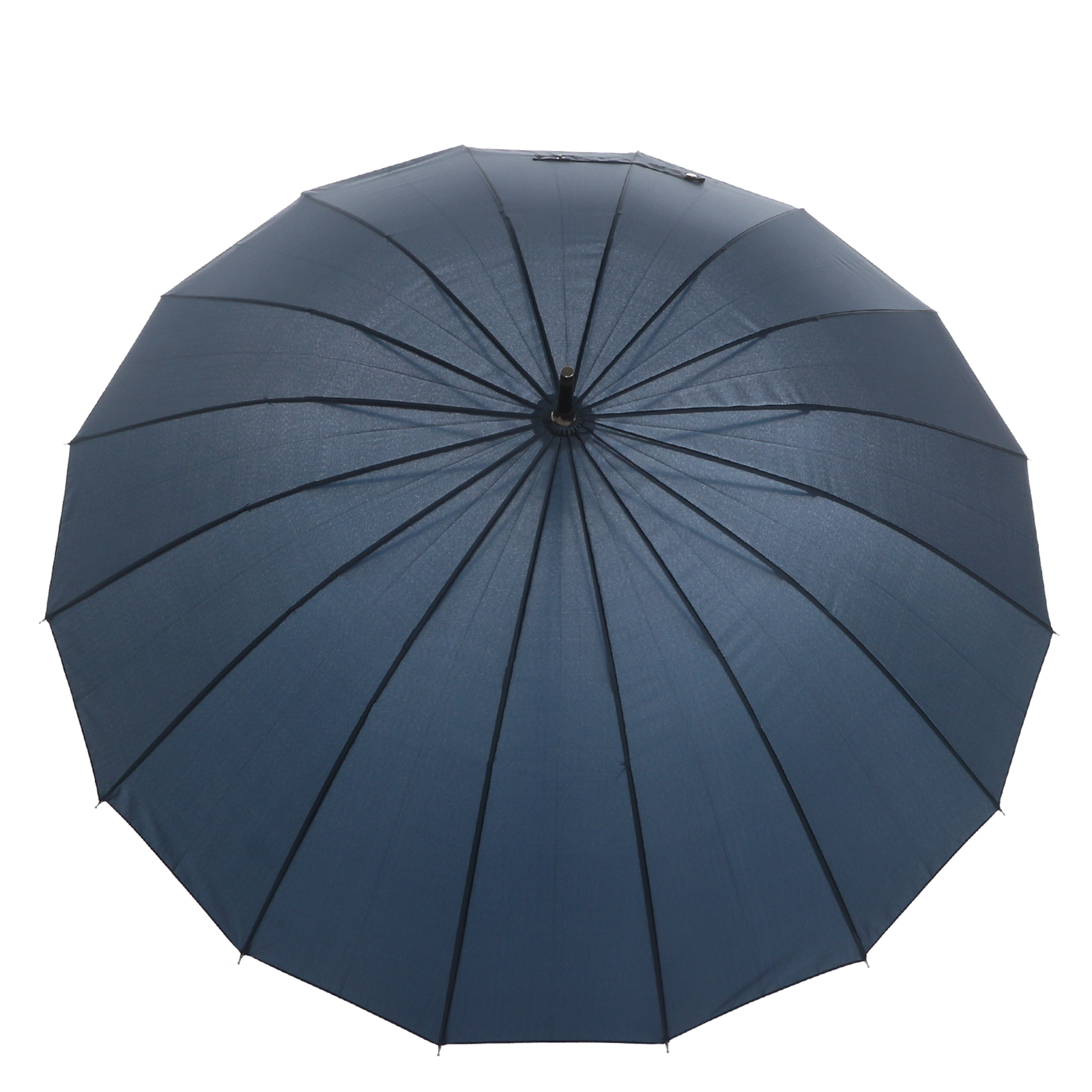 Полуавтоматический зонт трость Maison David с 16 спицами. Большой купол сделан из прочного текстиля эпонж 190T. Вода не задерживается на материале, собираясь в капли и легко скатываясь с купола. Благодаря большому диаметру купола зонт защитит одного или двух человек. Спицы из фибергласса и железный стержень делают аксессуар надежным и долговечным. Загнутая округлая деревянная ручка удобно лежит в руке, сложенный зонт легко повесить на запястье или крючок.