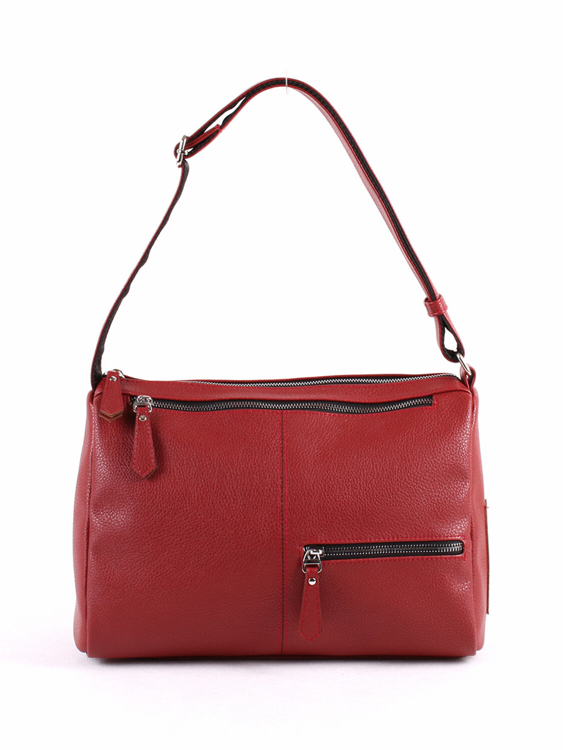 Сумка женская, мягкая с одним отделением на молнии. На переденей стенке - два кармана на молнии. На задней стенке -карман на молнии. Внутри открытый карман, карман на молнии, карман для документов.Несъемный ремень регулируется по высоте от 53 до 90 см. Бордовый