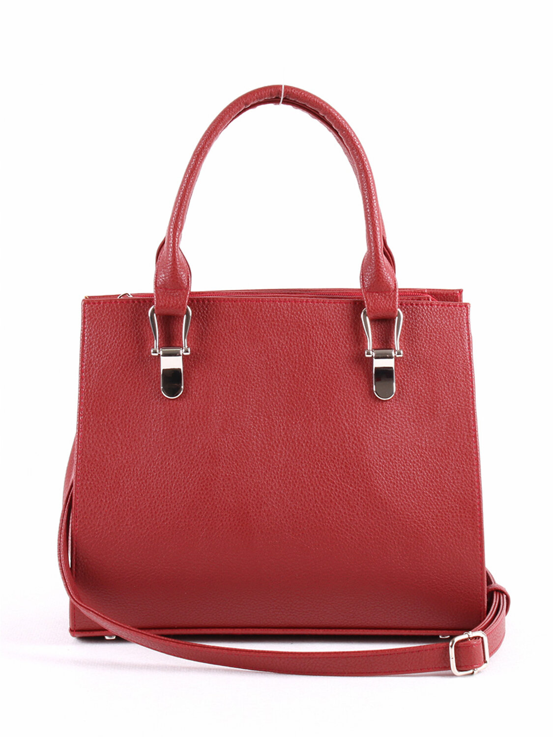 Сумка женская , полужесткая, на двух ручках. Два отделения на молнии. На задней стенке - карман на молнии. Внутри - карман на молнии, вместительный карман-перегородка. Высота ручек - 16 см., длина - 40 см. Съемный ремень регулируется по длине от 73 до 135 см. Бордовый