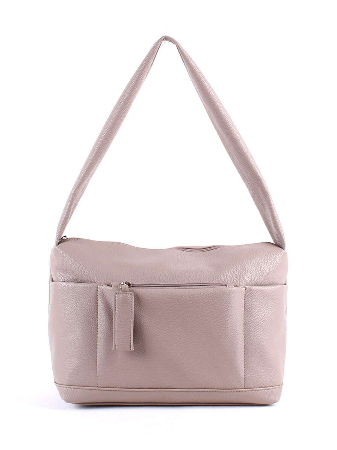 Сумка женская, мягкая. Имеет одно отделение на молнии. Внутри два кармана для документов и мелочей. На задней стенке - карман на молнии. На передней стенке - карман на молнии. Ручка не съемная, не регулируемая. Высота ручки 28 см, длина ручки 72 см Бежевый