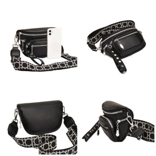 Внутри: одно отделение на молнии. На внешней передней стенке расположено 4 кармана на молнии. Отделения вместительные и подходят для документов, телефона и различных мелочей. Поясной ремень регулируется по длине. Сумка универсальная - её можно носить на поясе, на плече, через плечо, в руках и на локтевом сгибе - как удобно и по ситуации.