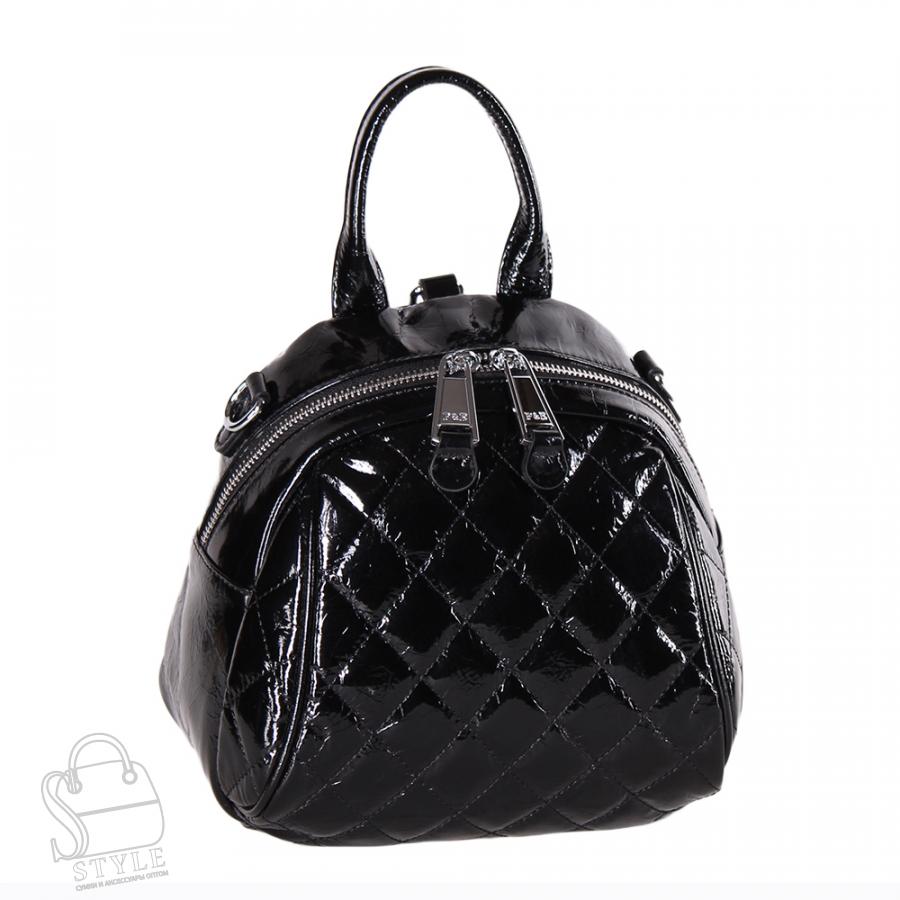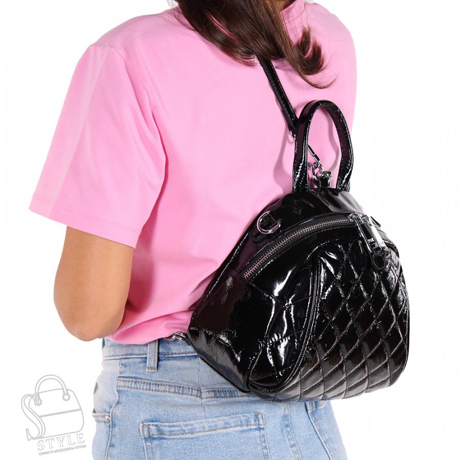 Рюкзак-трансформер, выполнен из лаковой натуральной кожи. Дополнен серебристой фурнитурой. Данная модель закрывается на молнии. Каркас полужёсткий. Носится как сумка или как рюкзак. В комплекте съемные рамени с регулировкой длины и ремень-стропа.