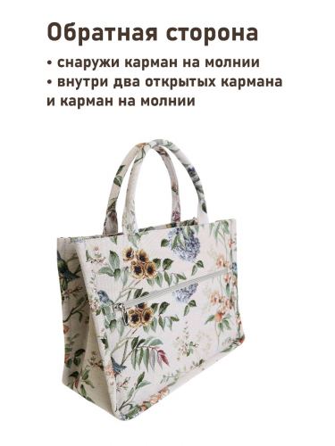 Рисунок создается переплетением нитей различных цветов и фактуры. Состав ткани: хлопок ( дающий фактуру и приятную тактильность ) и синтетические нити ( придающие износостойкость ). Плотность гобелена 410 г на кв.метр.