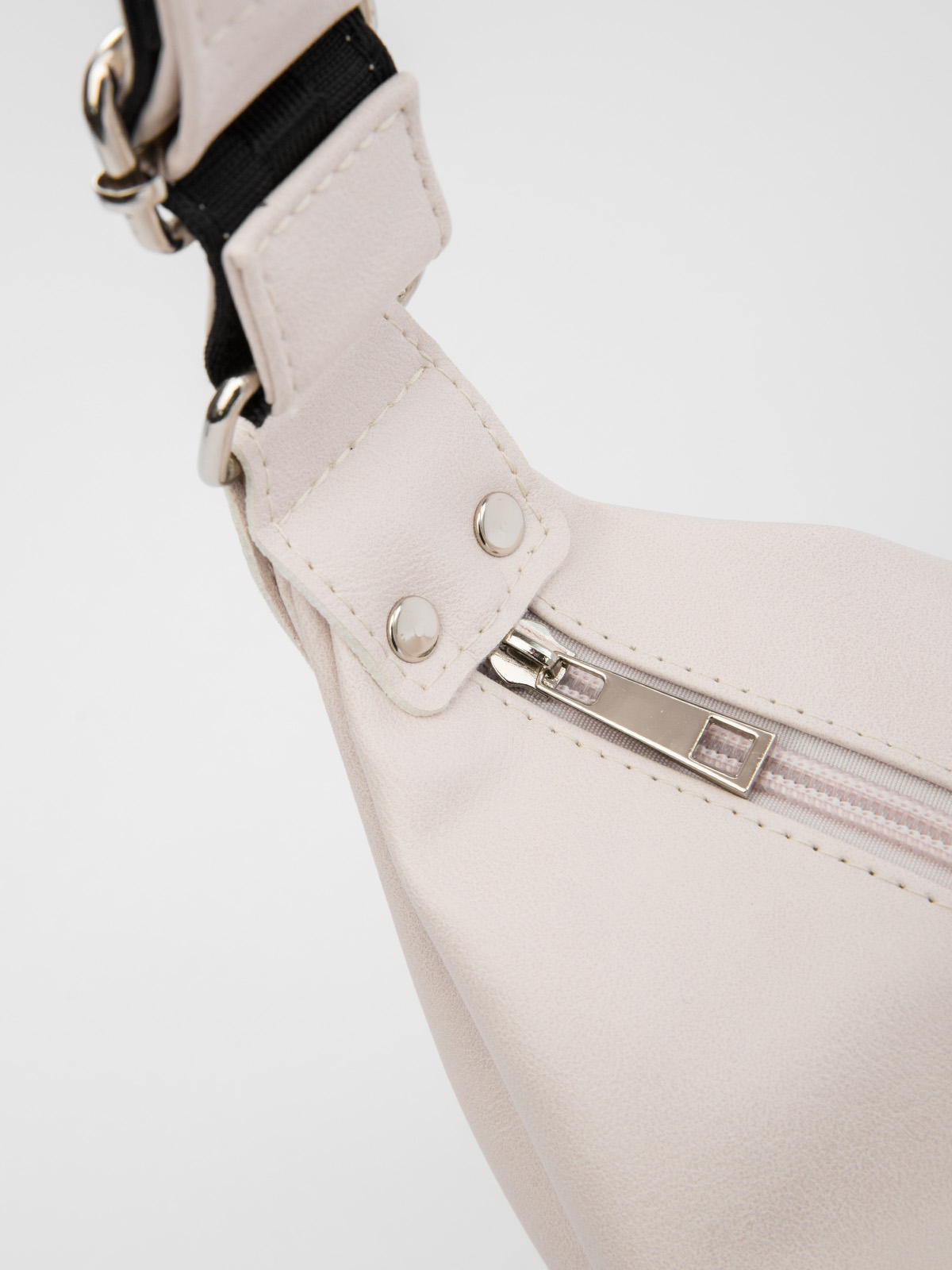 Практичные детали сумки: задний карман на молнии, удобная стропа для регулировки длины и мягкий крой, повторяющий изгиб тела.