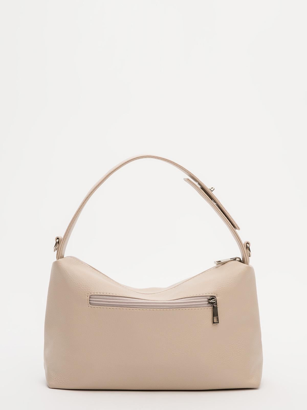 Мягкая вытянутая форма с широкой декоративной ручкой и металлической фурнитурой делает эту модель трендовым аксессуаром. Удобная короткая ручка идеально ложится в ладонь, а съёмный длинный ремень позволяет носить сумку через плечо. Основное отделение и задний карман на молнии обеспечивают практичность, а два внутренних кармана помогают поддерживать порядок.