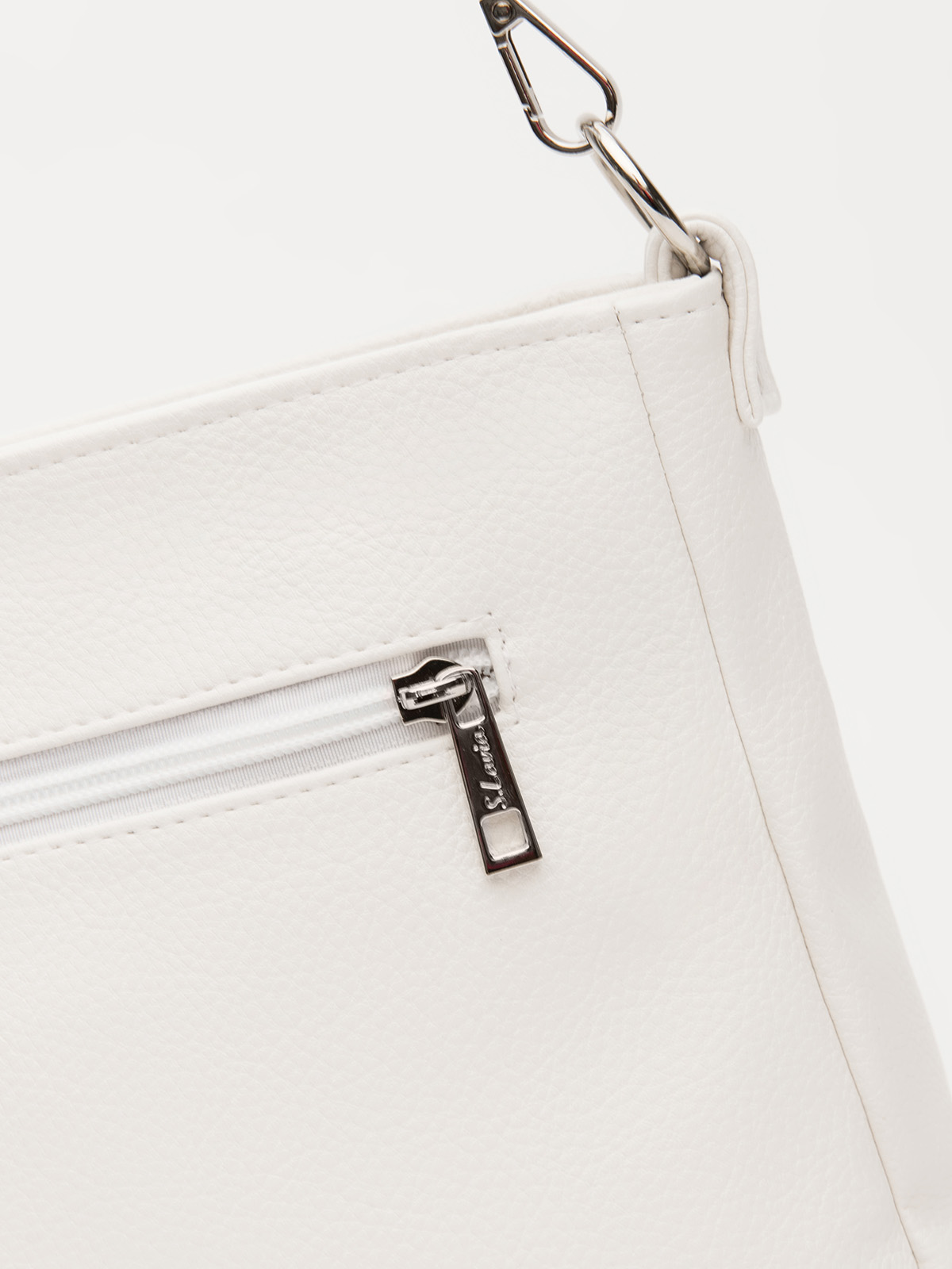 Геометричная форма с диагональным карманом и естественной складкой верха создаёт стильный женственный силуэт. В комплекте — съёмная короткая ручка и регулируемый ремень для разных вариантов ношения: в руке, на плече или через плечо.