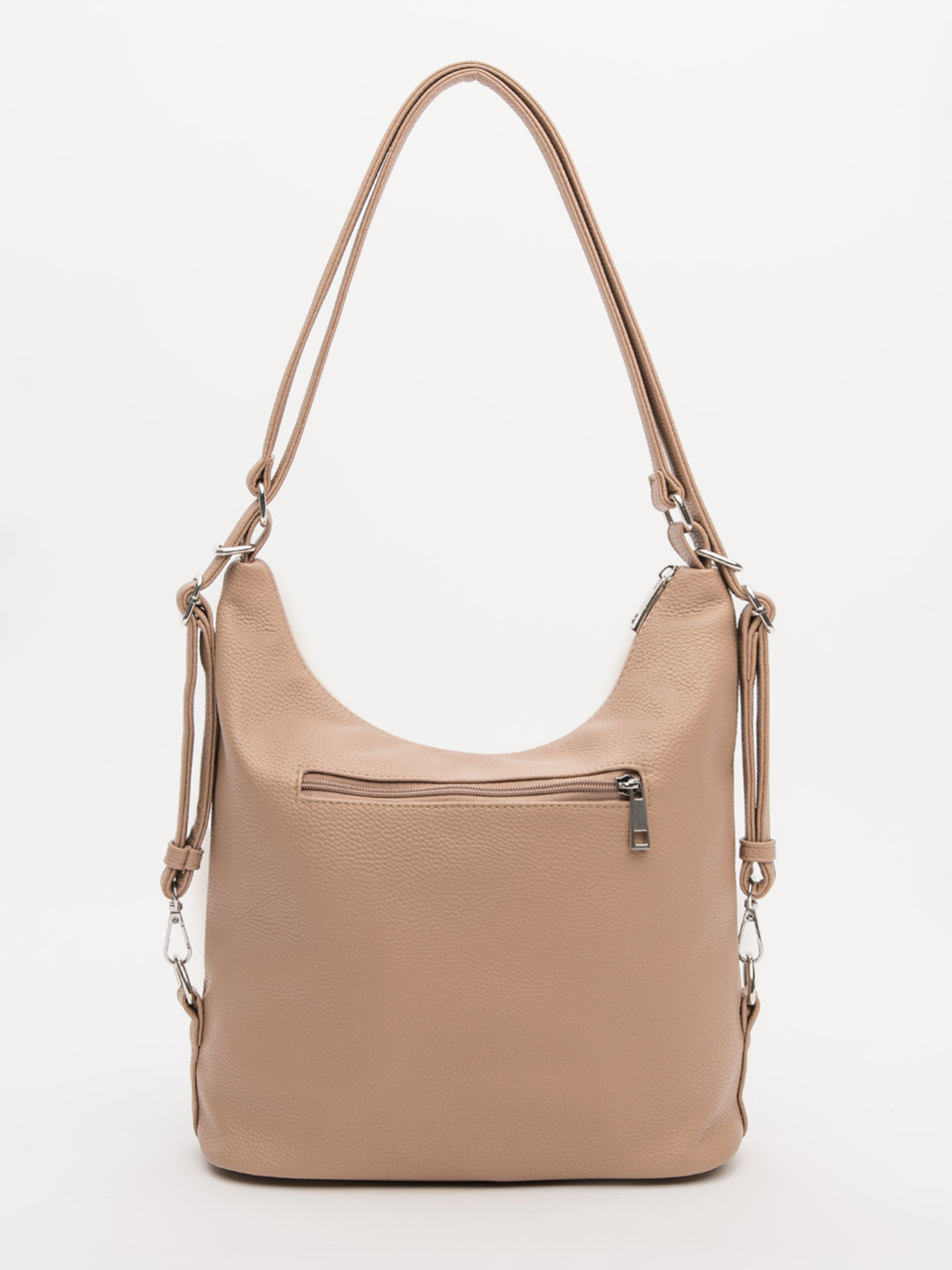Универсальная сумка-мешок трансформер размера L — идеальный спутник для динамичной повседневной жизни. Благодаря регулируемым лямкам на пряжках она легко превращается из стильной сумки-хобо в удобный рюкзак, подстраиваясь под ваши потребности. Практичный дизайн включает отдел на молнии, два вертикальных кармана спереди и дополнительный карман сзади для безопасного хранения мелочей. Внутри вас ждёт продуманная организация: два кармана на молнии для ценных вещей и открытый карман для быстрого доступа. Сдержанный стиль и многофункциональность делают эту сумку must-have для тех, кто ценит комфорт и эстетику.