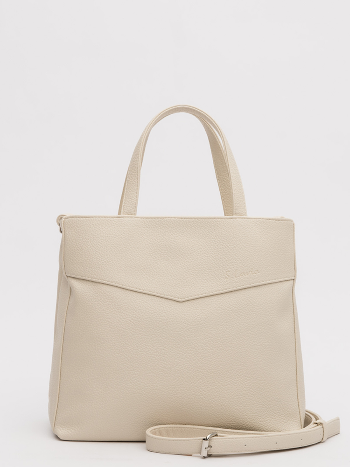 Базовый дизайн, актуальный в любом сезоне, дополнен женственной фигурной кокеткой на передней части, придающей модели особый шарм. Два удобных отдела под одной молнией и несколько внутренних карманов позволяют организовать пространство с комфортом. Универсальность ношения обеспечивают короткие ручки для ношения в руке или на локте и съёмный регулируемый ремень для ношения через плечо. Эта сумка — идеальный выбор для женщин любого возраста и роста, ценящих как классическую эстетику, так и практичность в деталях.