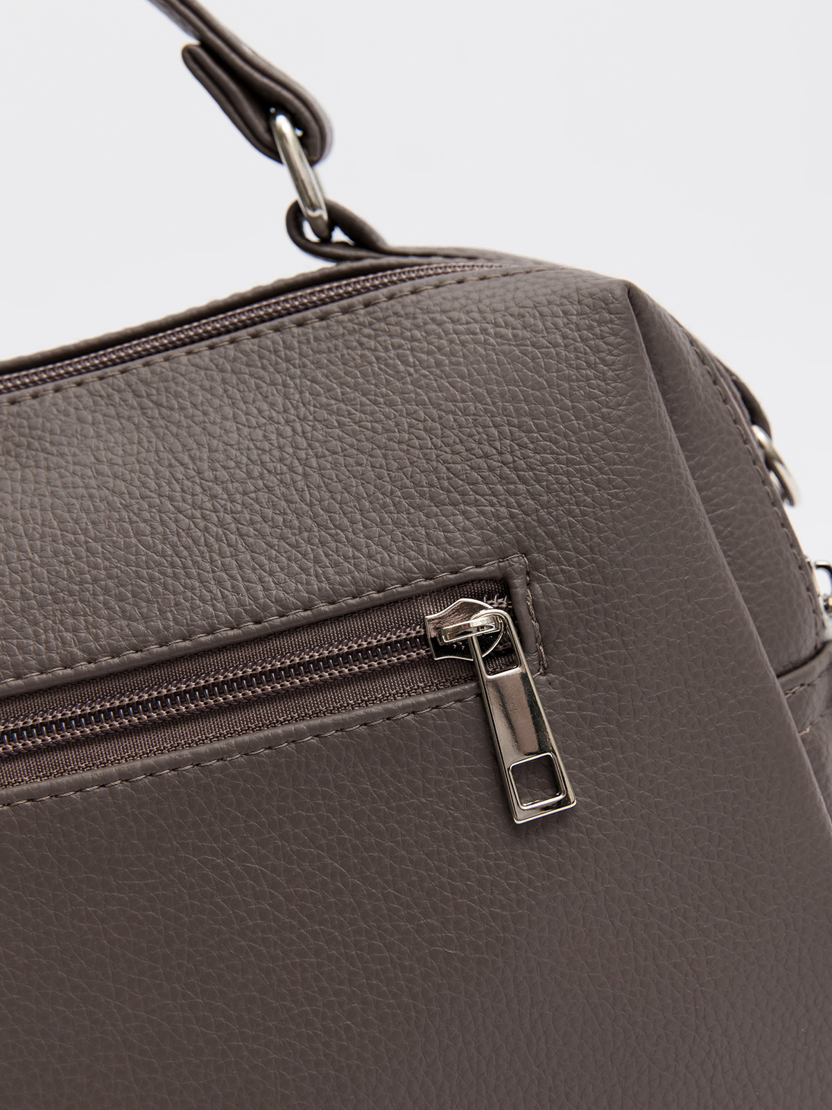 Разрезная передняя деталь с двумя карманами на металлической молнии придает модели строгий, но выразительный характер. Два основных отделения на спиральной молнии и продуманные карманы (включая задний для телефона) обеспечивают идеальную организацию пространства.