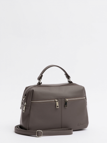 Трапециевидная форма с фигурным подрезом и разрезной передней деталью создает строгий, но выразительный силуэт. Центральный вход на молнии и продуманная внутренняя организация — перегородка с молнией и два стандартных кармана — позволяют удобно разместить все необходимое.