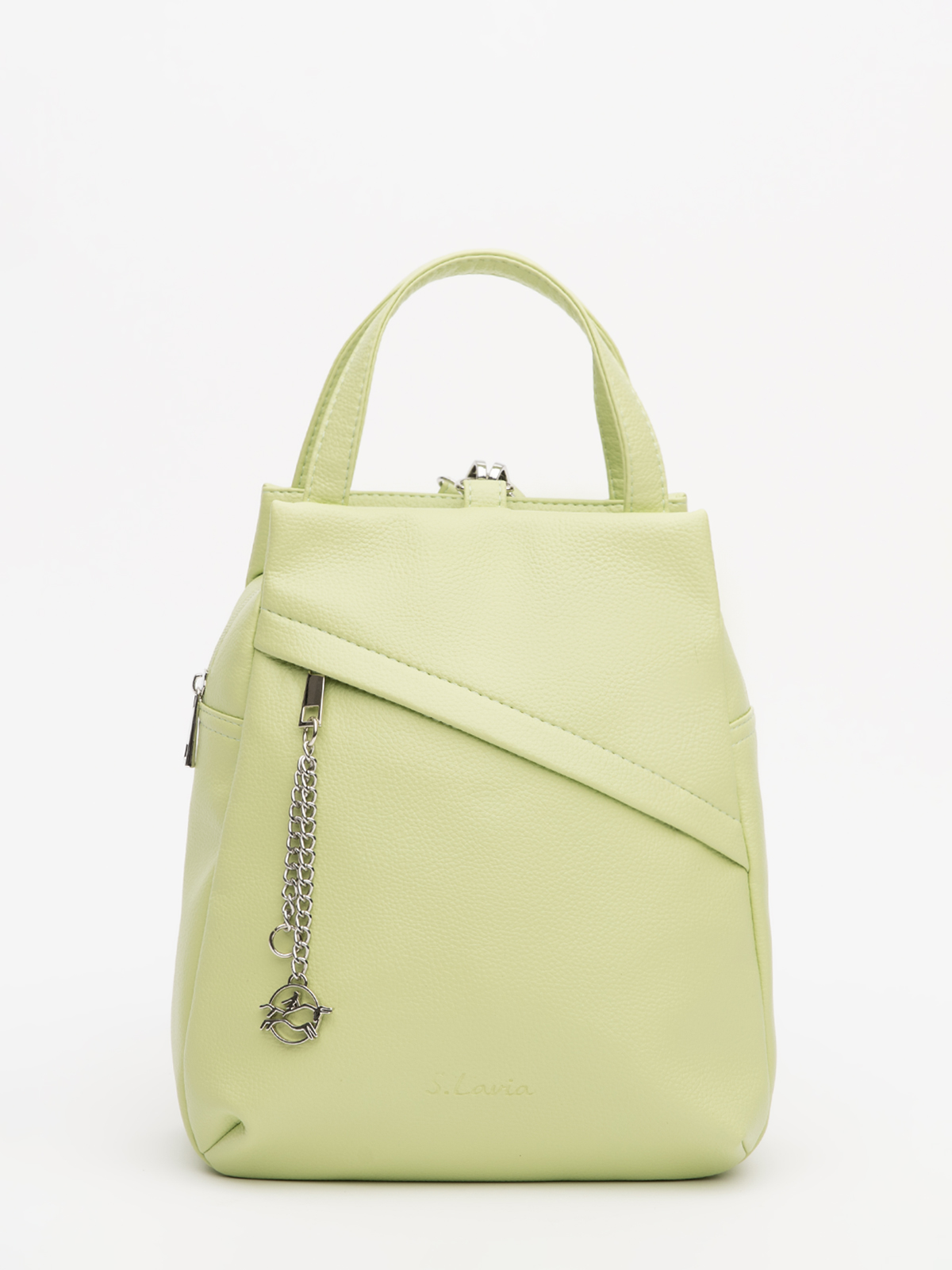 Асимметричная форма с металлическим декором сразу выделяет эту модель. Передний карман со скрытой молнией сохраняет чистые линии, добавляя внешней сдержанности. Объёмный основной отдел и продуманные карманы вместят всё необходимое, сохраняя аккуратный вид.