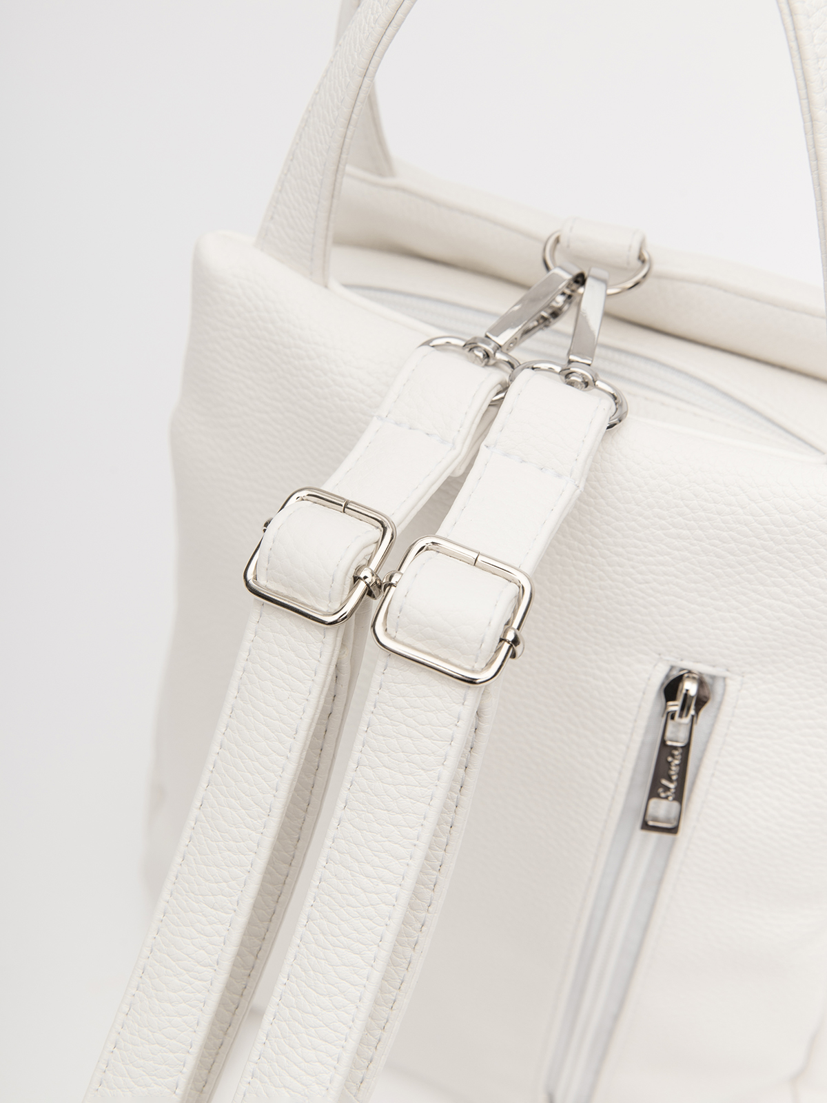Носите его классически — на длинных регулируемых лямках, или возьмите за короткие ручки, как элегантный саквояж. Этот рюкзак одинаково органично дополнит и кэжуал-образ с кроссовками, и романтичный наряд, оставаясь удобным для активного дня.