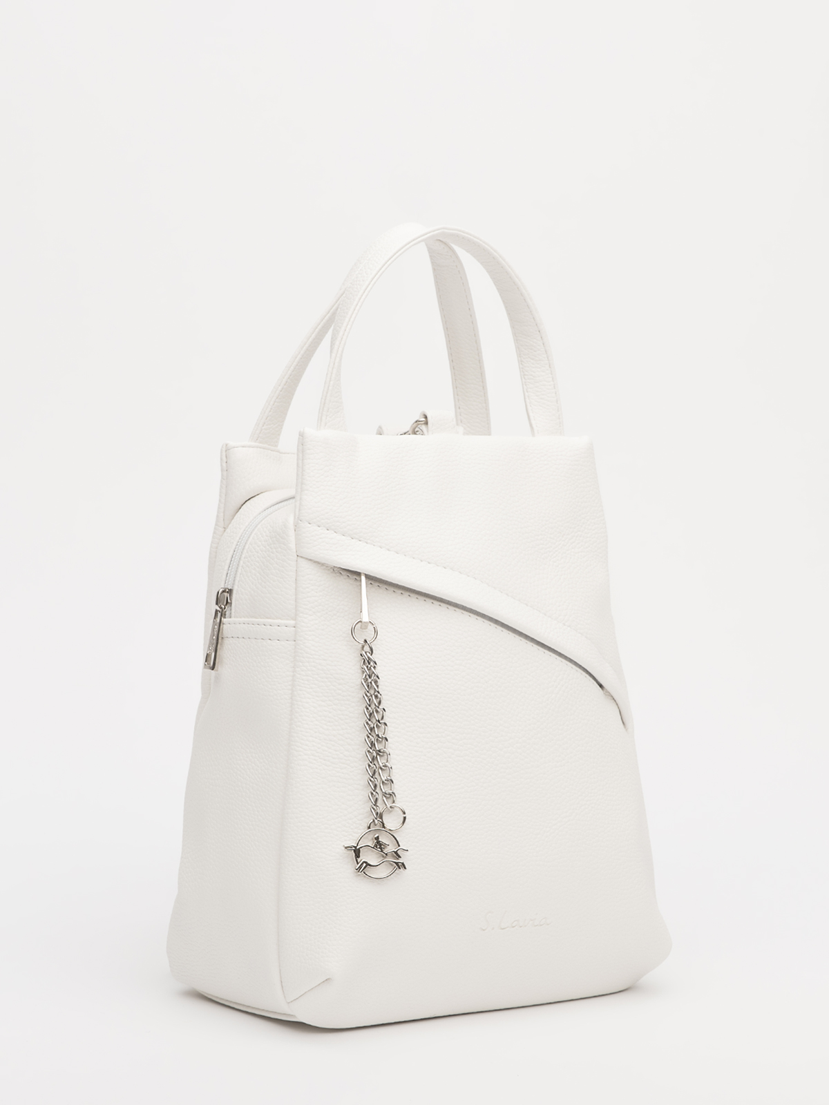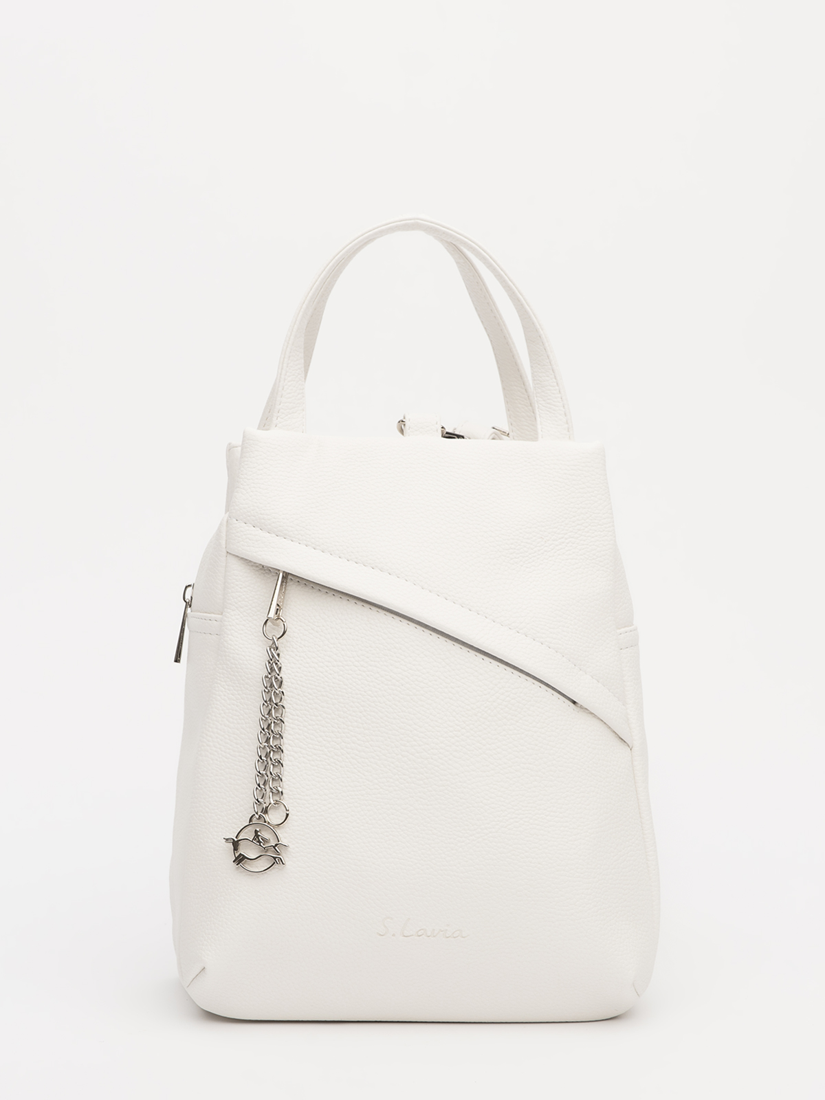 Асимметричная форма с металлическим декором сразу выделяет эту модель. Передний карман со скрытой молнией сохраняет чистые линии, добавляя внешней сдержанности. Объёмный основной отдел и продуманные карманы вместят всё необходимое, сохраняя аккуратный вид.