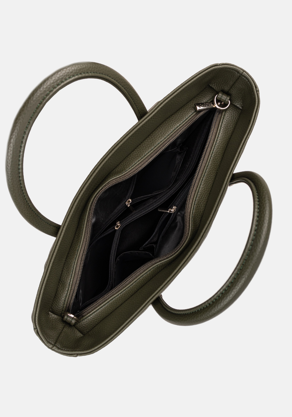 Внутри: средник на молнии, два кармана на молнии, карман для карточек или ключей