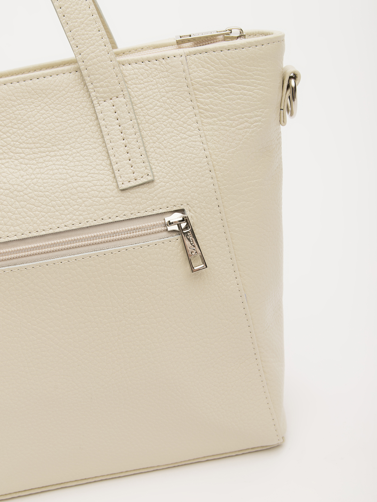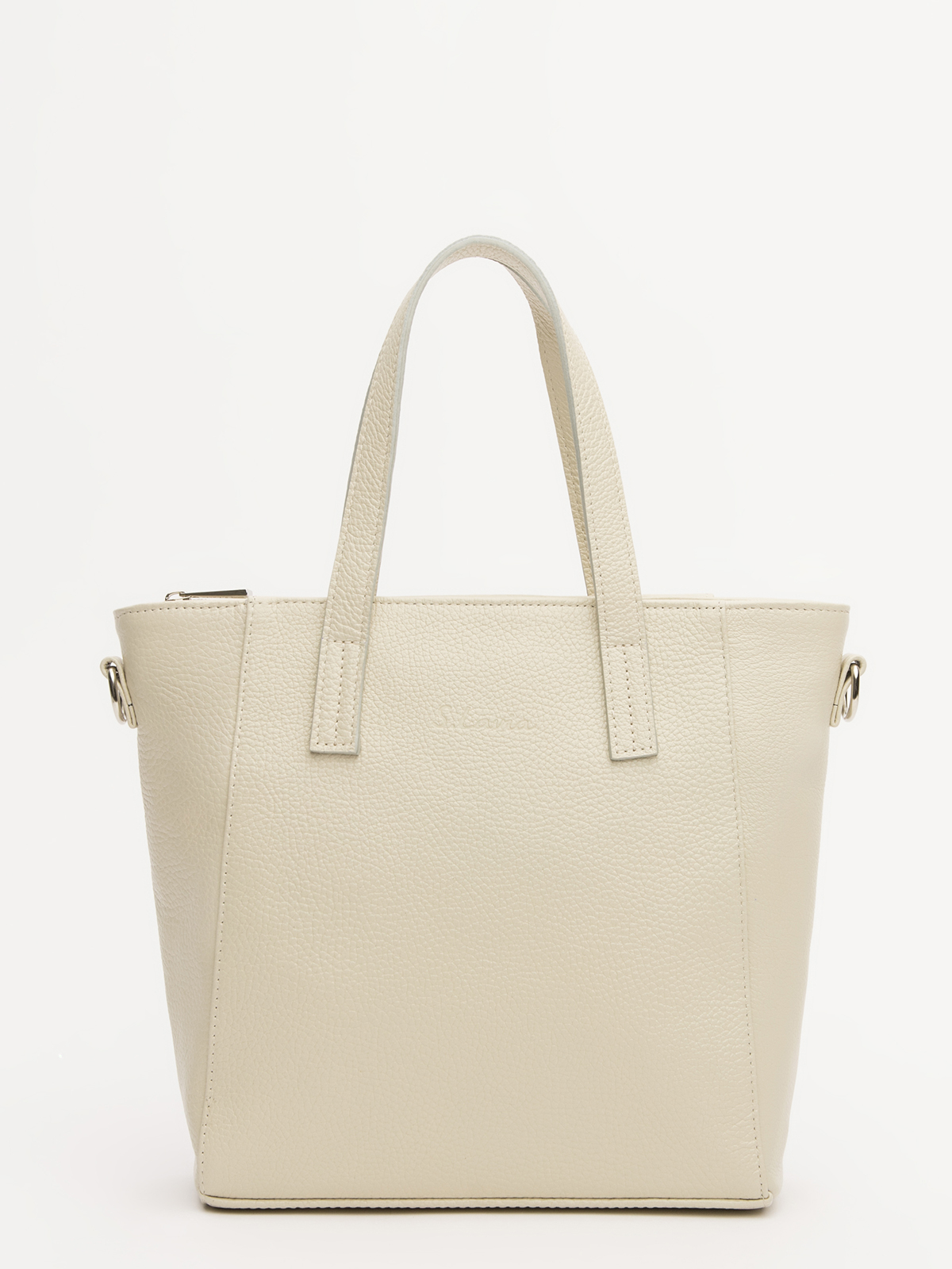 Элегантный кожаный тоут среднего размера с трапециевидным силуэтом, сужающимся книзу. Длинные настрочные ручки и съемный регулируемый ремень на карабинах предлагают несколько вариантов ношения. Внутри - три стандартных кармана для удобного хранения мелочей. Задний карман на молнии обеспечивает быстрый доступ к необходимым вещам. Стильное тиснение на передней части завершает лаконичный классический дизайн сумки.