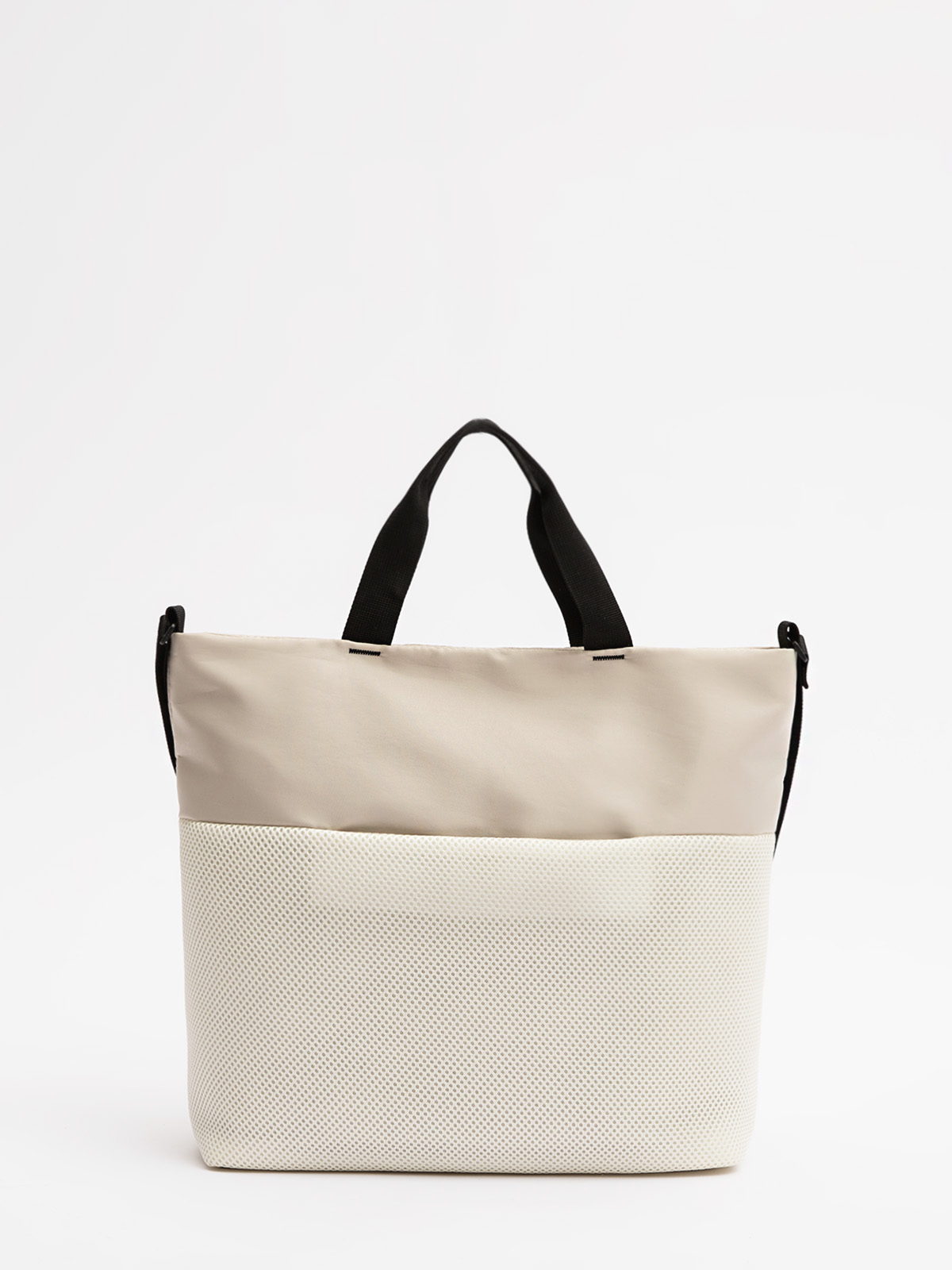 Современный тоут габарита М из объёмной сетки и твила — универсальный аксессуар для активной жизни.