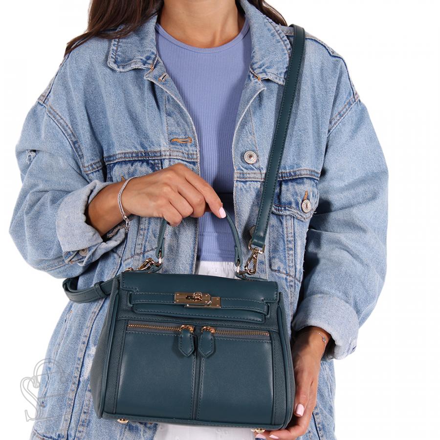 Сумка-сэтчел, выполнена из  экокожи В размере мини. Декорирована эффектной застежкой на передней части. Дополнена золотистой фурнитурой. Данная модель закрывается на клапан. Каркас полужесткий. Носится в руке за встроенную ручку или на плече. В комплекте есть ремень с регулировкой длины. На дне предусмотрены ножки.