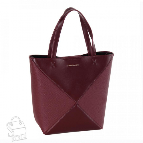 Модель-торба, выполнена из  экокожи. Декорирована вставками на корпусе. Дополнена золотистой фурнитурой. Данная модель закрывается на кнопку. Каркас полужесткий. Носится в руке за встроенные ручки или на плече. В комплекте есть ремень с регулировкой длины.