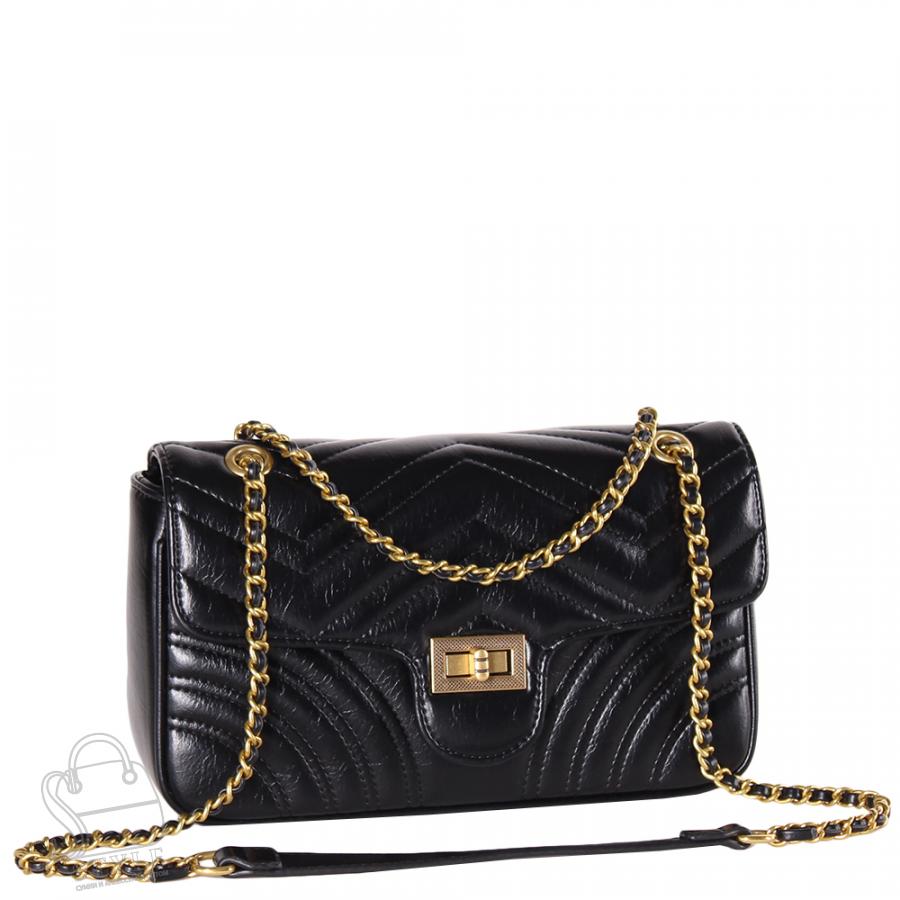 Модель закрывается клапаном на поворотный замок, имеет один отдел на молнии. Внутри подкладочный материал, на боковых стенках один карман на молнии и один открытый карман. Фурнитура матовое золото.