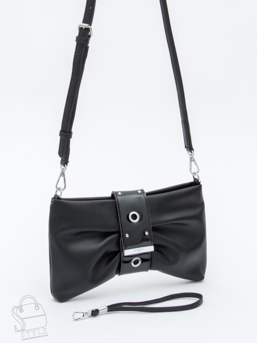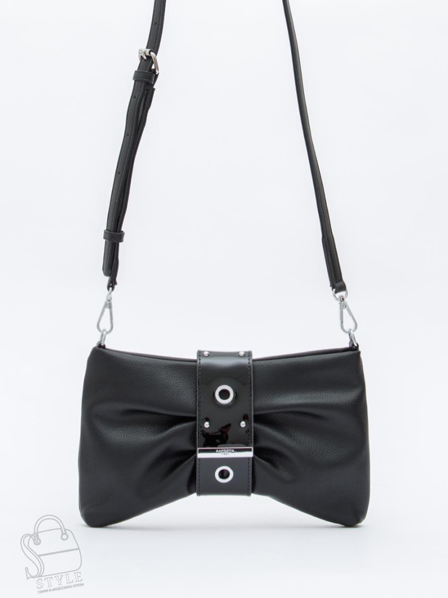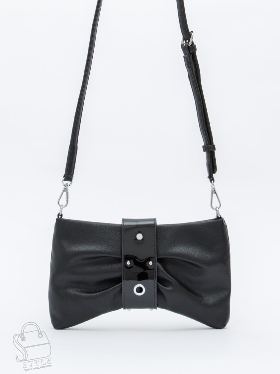 Эффектная модель в форме банта, выполнена из экокожи. Дополнена серебристой фурнитурой. Данная модель закрывается на хлястик, носится на плече, в комплекте имеется ремень с регулировкой длины . Или в руке за петельку. Каркас полужесткий.