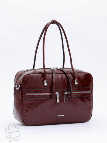 Вместительная модель, выполнена из экокожи.  Дополнена серебристой фурнитурой. Данная модель закрывается на молнию, носится в руке за встроенные ручки. Или на плече, в комплекте имеется ремень с регулировкой длины. Каркас полужесткий.