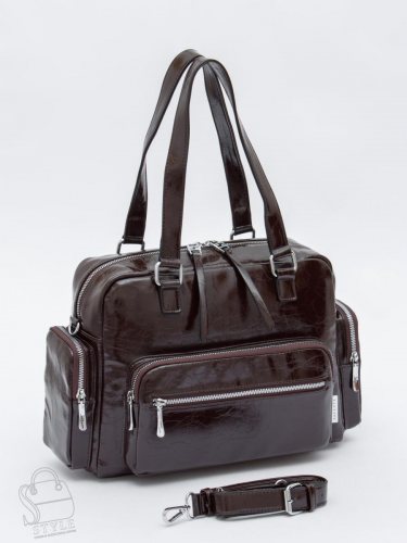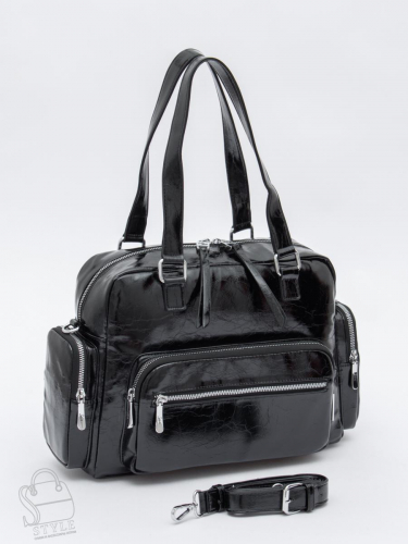 Функциональная сумка, выполнена из экокожи. Дополнена серебристой фурнитурой. Данная модель закрывается на молнию. Каркас полужесткий. Носится в руке за встроенные удлиненные ручки, или на плече. В комплекте имеется съемный ремень с регулировкой длины.