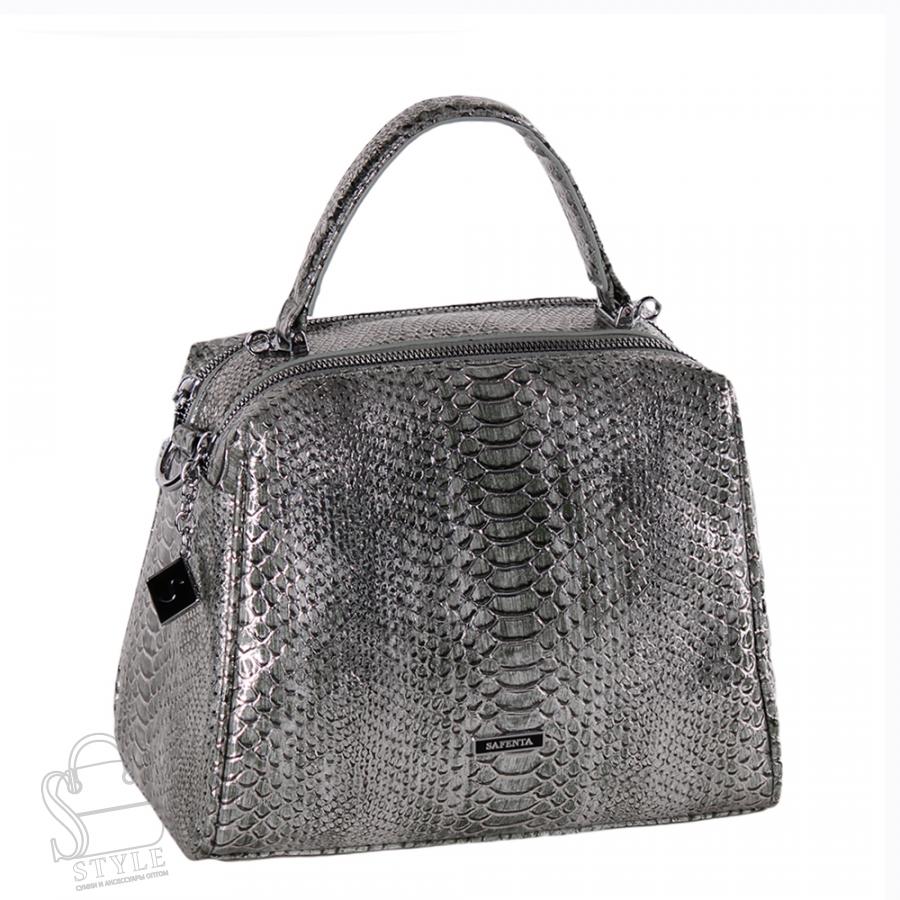Эффектная модель с перламутровым эффектом, выполнена из экокожи. Дополнена серебристой фурнитурой. Данная модель закрывается на молнию. Каркас полужесткий. Сумка носится за ручки или за плечевой ремень на плече.