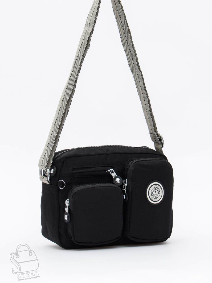 Сумка кросс-боди, выполнена из текстиля. Дополнена фурнитурой серебро. Данная модель закрывается на молнию, носится на плече за встроенный ремень с регулировкой длины. Каркас мягкий.