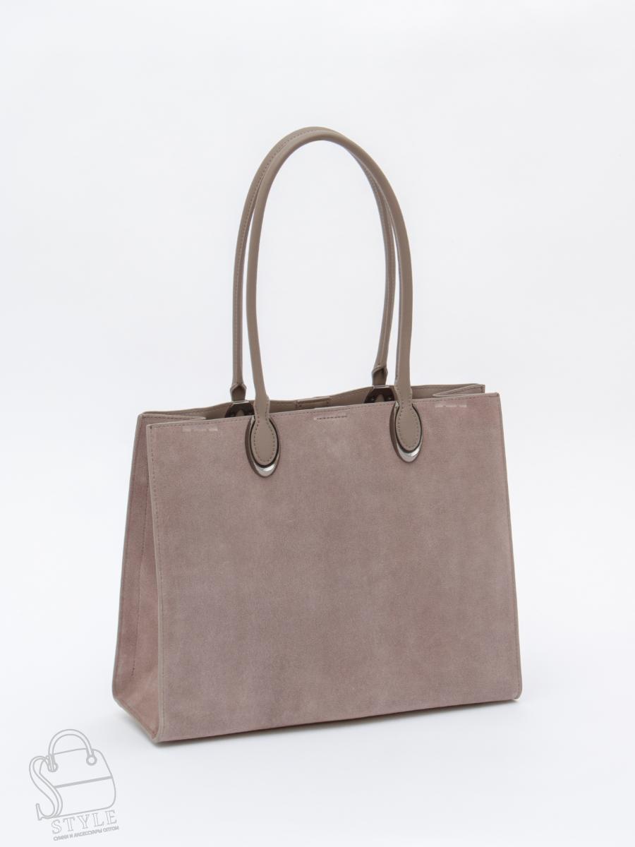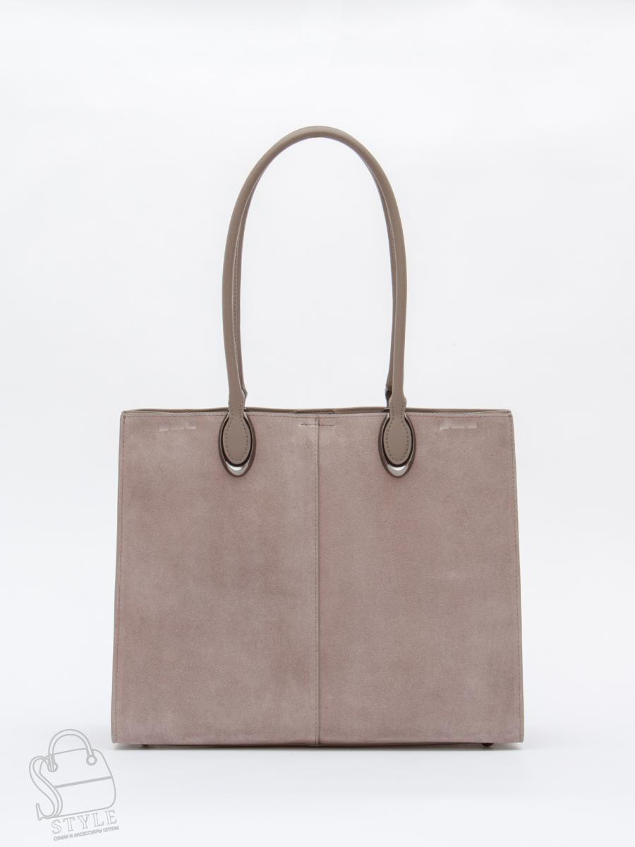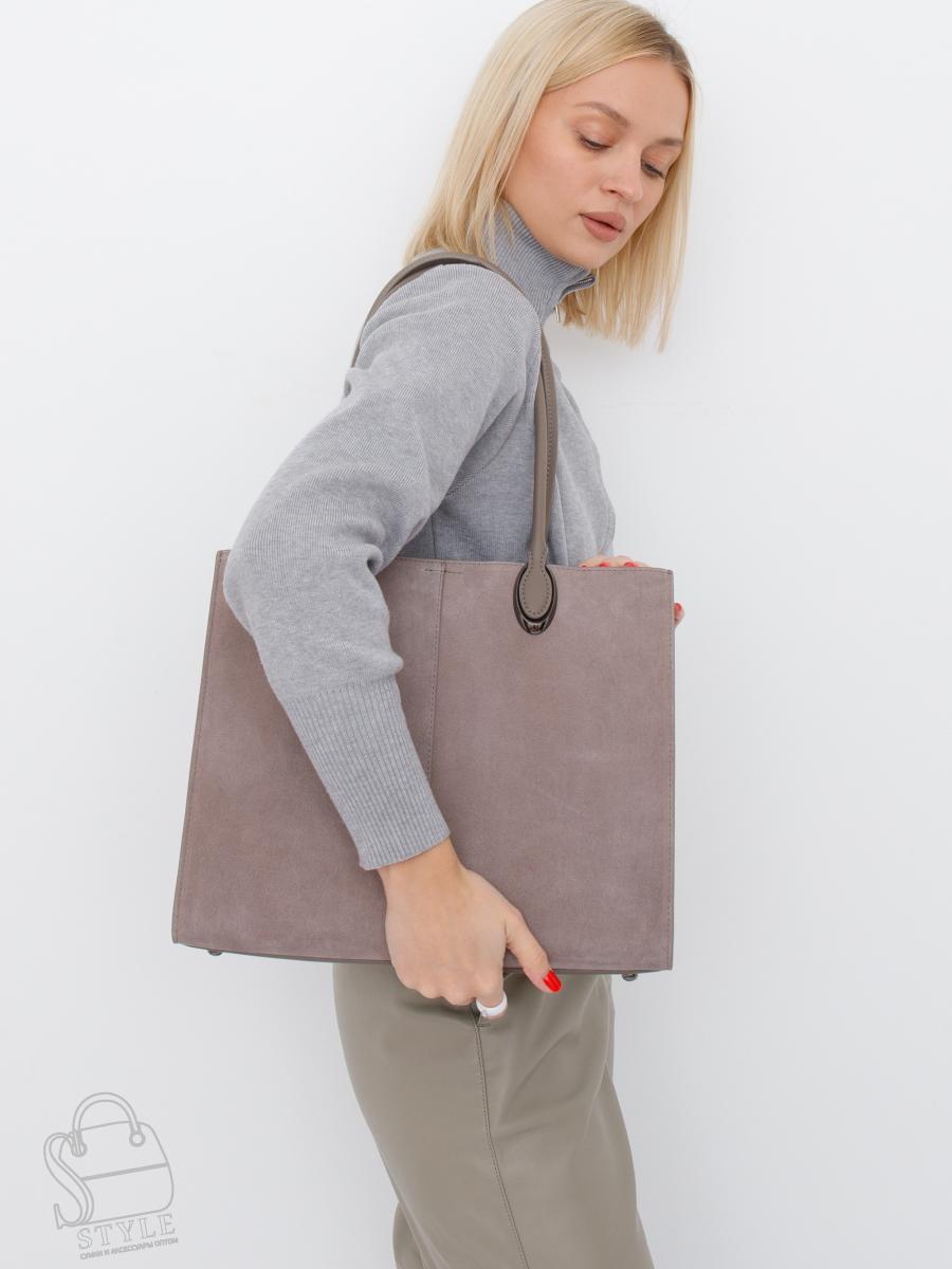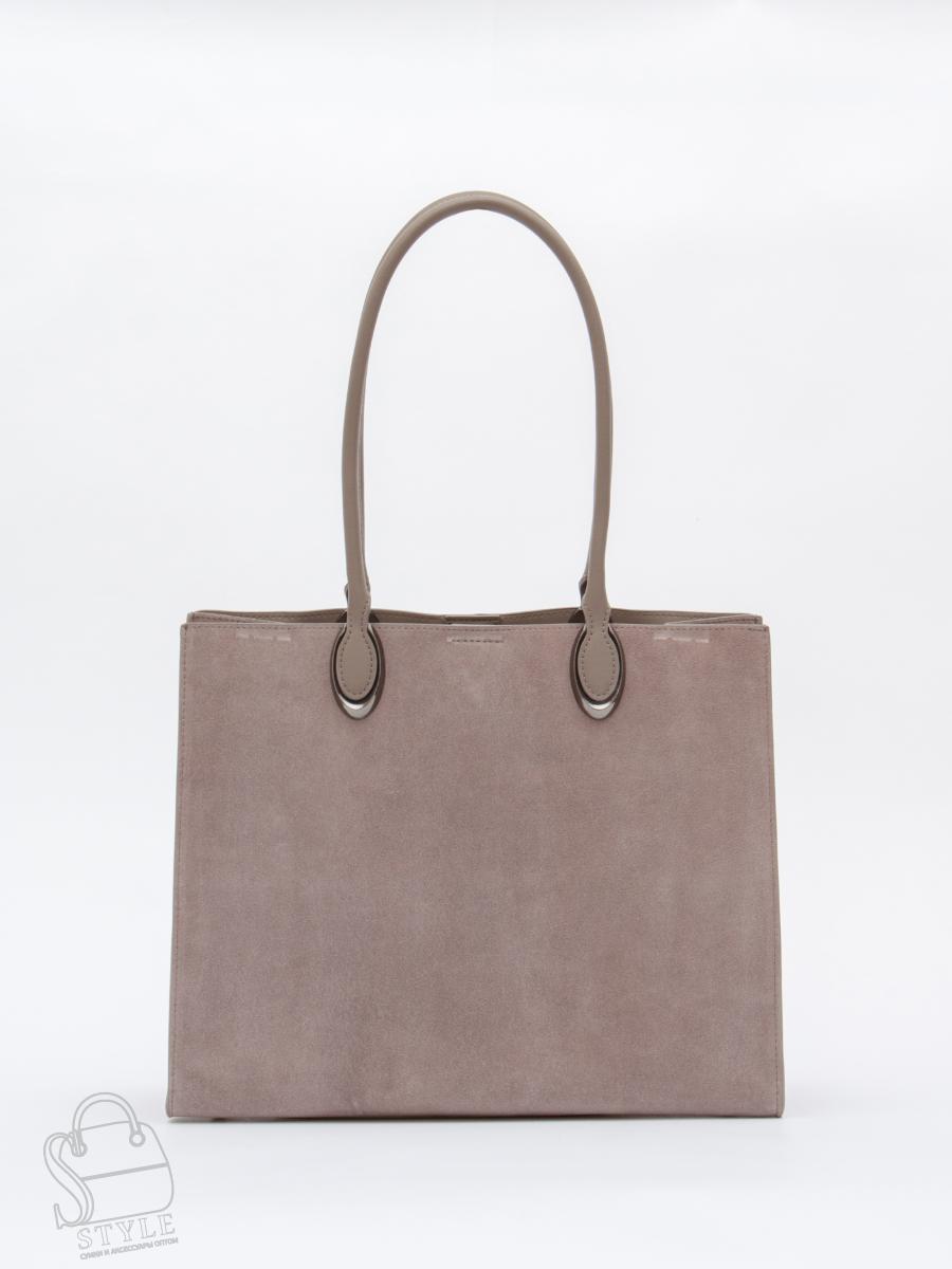 Стильная модель-тоут, выполнена из замша. Дополнена серебристой фурнитурой. Данная модель закрывается на молнию. Каркас жесткий. Носится в руке или на плече за встроенные удлиненные ручки.