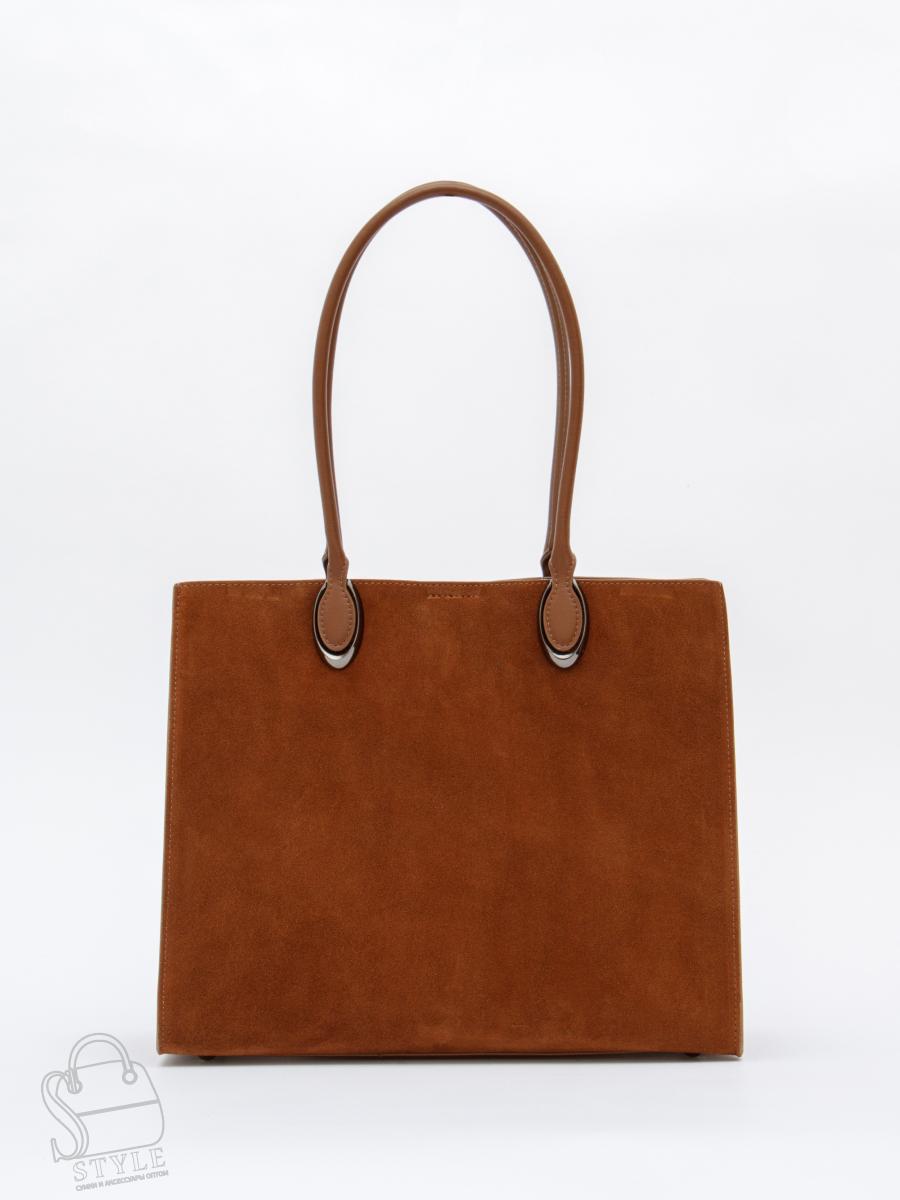 Стильная модель-тоут, выполнена из замша. Дополнена серебристой фурнитурой. Данная модель закрывается на молнию. Каркас жесткий. Носится в руке или на плече за встроенные удлиненные ручки.