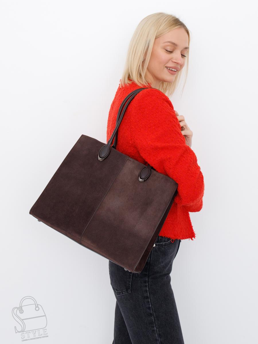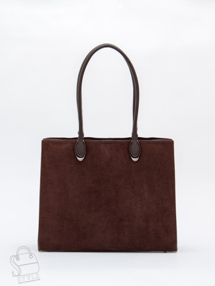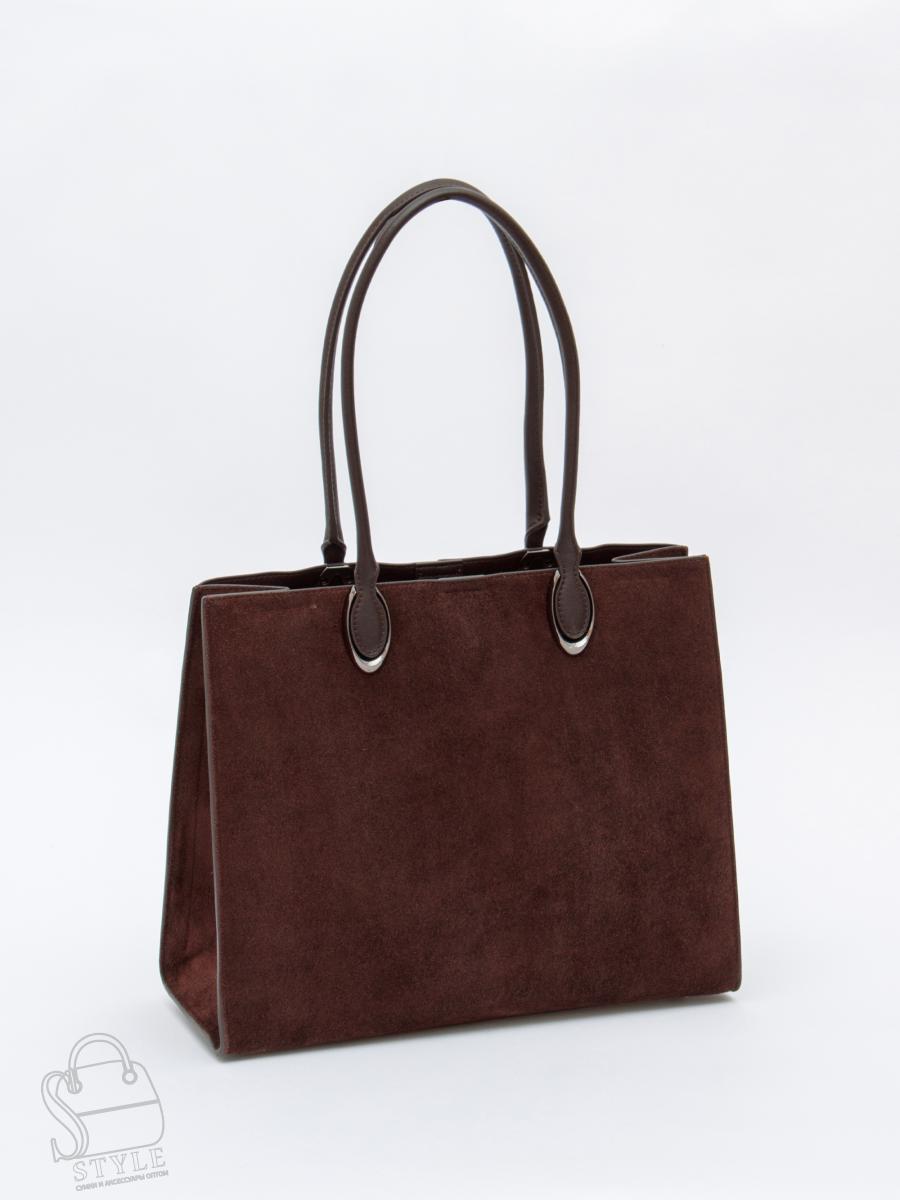 Стильная модель-тоут, выполнена из замша. Дополнена серебристой фурнитурой. Данная модель закрывается на молнию. Каркас жесткий. Носится в руке или на плече за встроенные удлиненные ручки.
