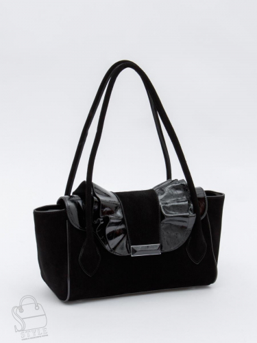 Модель-хобо, выполнена из замши. Дополнена серебристой фурнитурой. Данная модель закрывается на молнию. Носится в руке или на плече за встроенные ручки. Каркас мягкий.