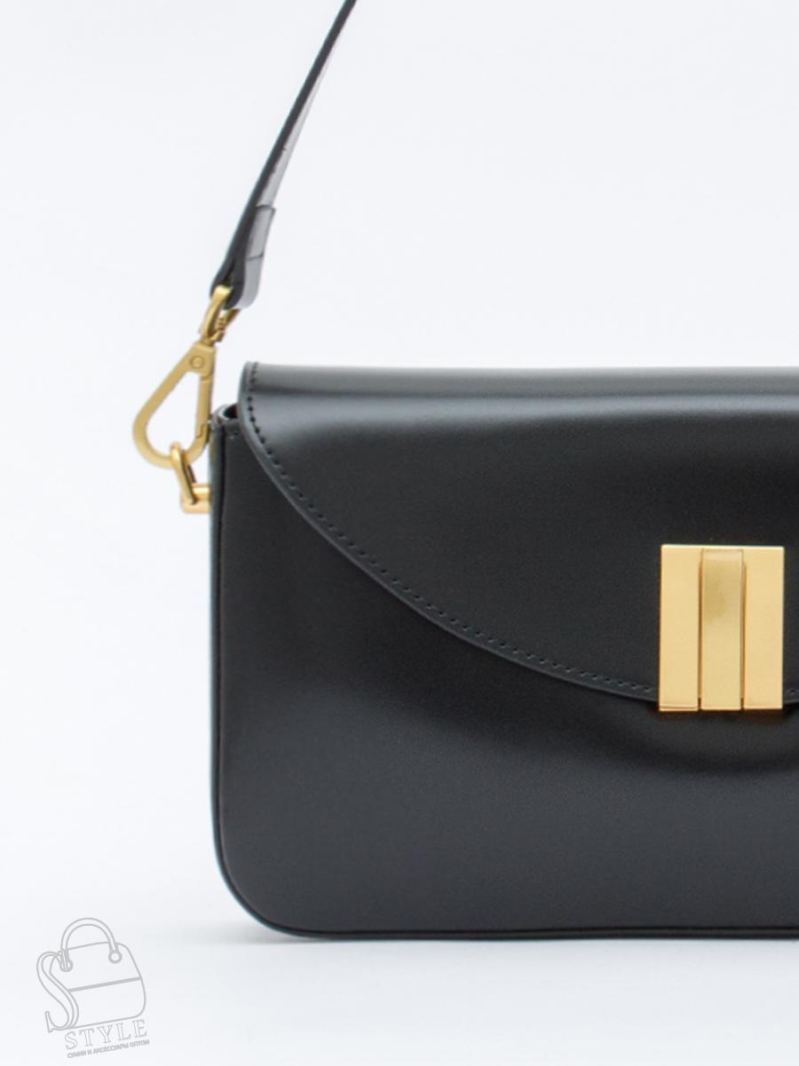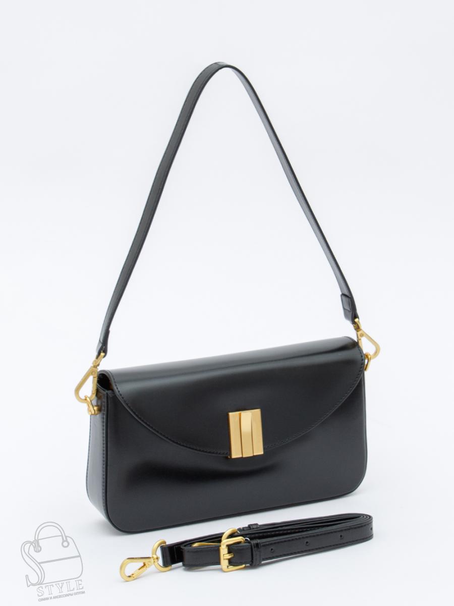 Сумка-багет, выполнена из натуральной кожи. Дополнена золотистой фурнитурой. Данная модель закрывается на клапан, носится в руке за съемную ручки. Или на плече, в комплекте имеется ремень с регулировкой длины. Каркас жесткий.