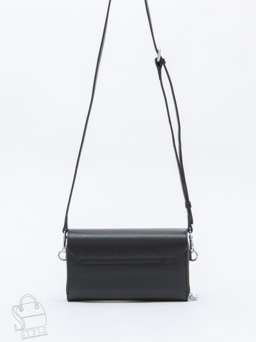 Сумка-кошелек, выполнена из натуральной кожи. Дополнена серебристой фурнитурой.  Данная модель закрывается на клапан. Носится на плече, съемный ремень регулируется по длине. Каркас жесткий.