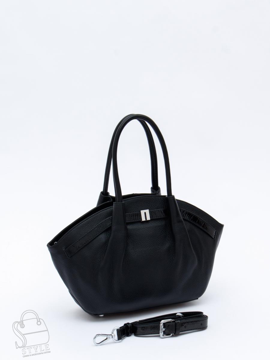 Сумка в форме лодочки, выполнена из натуральной кожи. Декорирована ремнем на корпусе. Дополнена серебристой фурнитурой. Данная модель закрывается на молнию. Каркас полужесткий.  Носится на плече или в руке. В комплекте имеется съемный ремень с регулировкой длины и две встроенные ручки.
