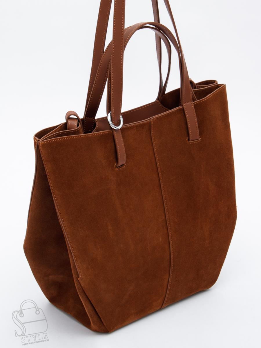Трендовая модель с альтернативными ручками, выполнена из замши. Дополнена серебристой фурнитурой. Данная модель закрывается на молнию. Каркас полужесткий. Носится за короткие или длинные встроенные ручки. В комплекте имеется съемная косметичка.