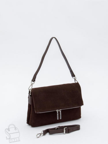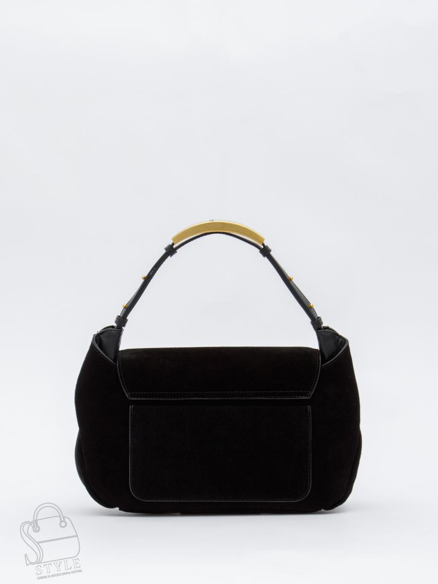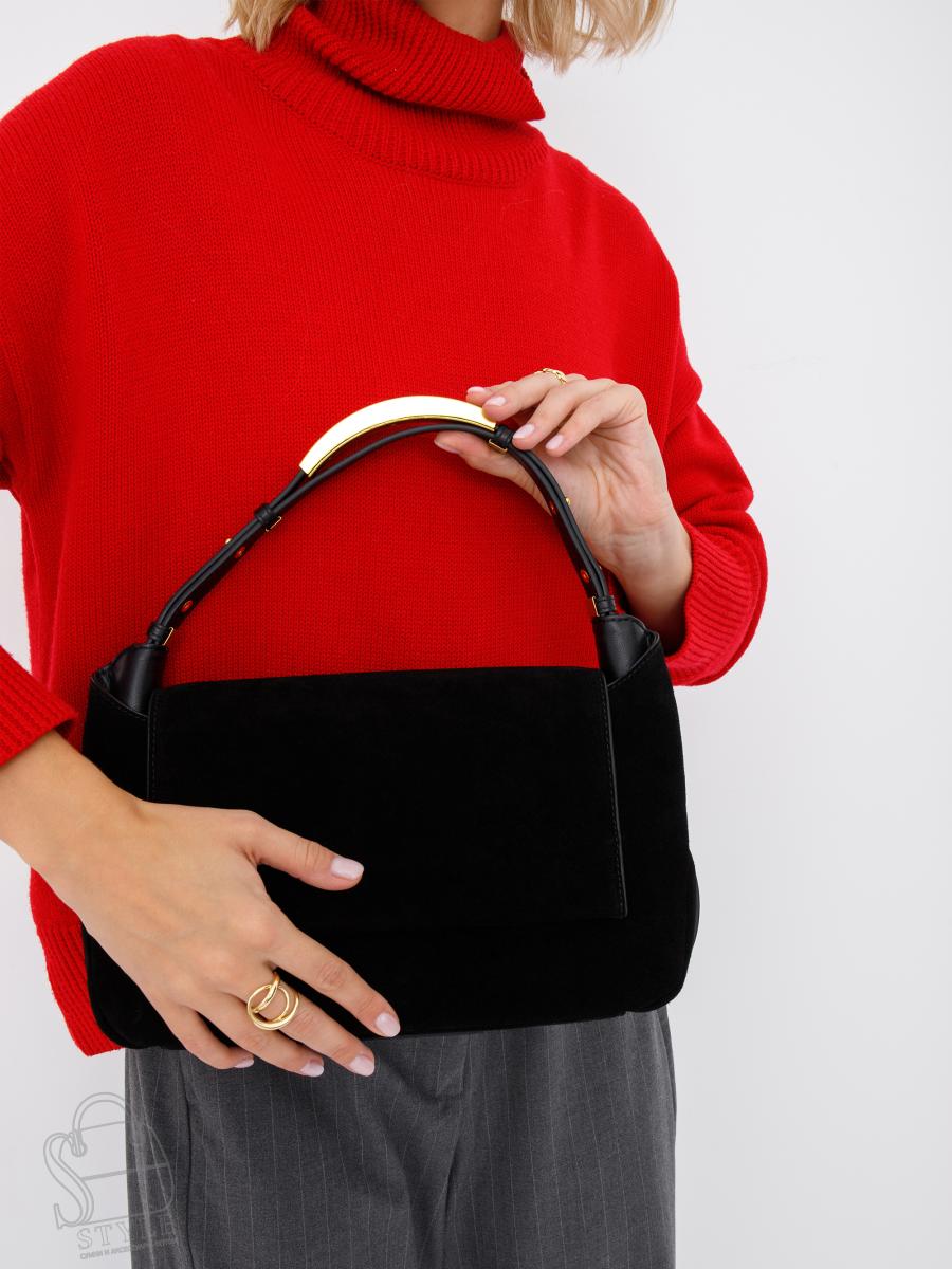 Стильная сумка, выполнена из замши. Декорирована элементом на ручке. Дополнена золотистой матовой фурнитурой. Данная модель закрывается на клапан. Каркас полужесткий. Носится в руке за встроенную ручку или на плече. В комплекте имеется съемный ремень с регулировкой длины.
