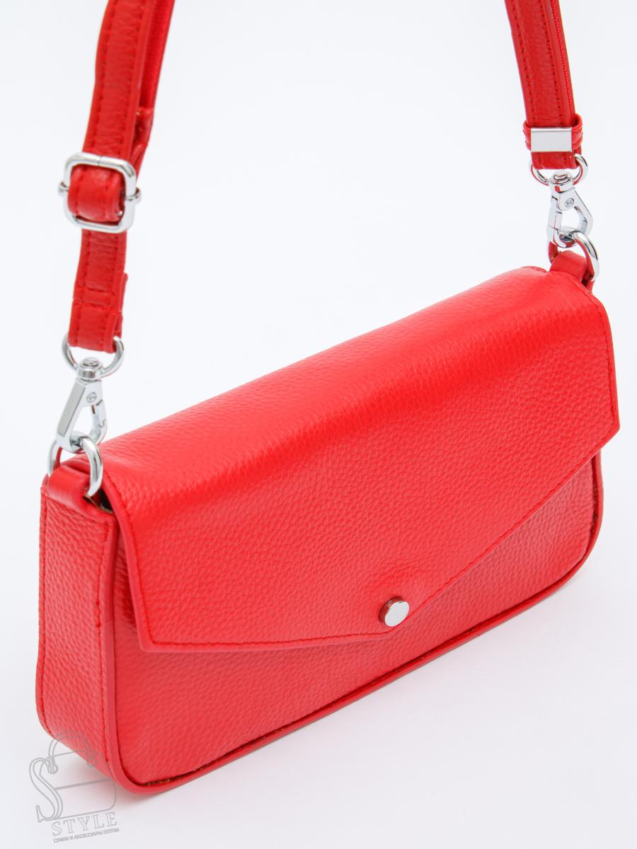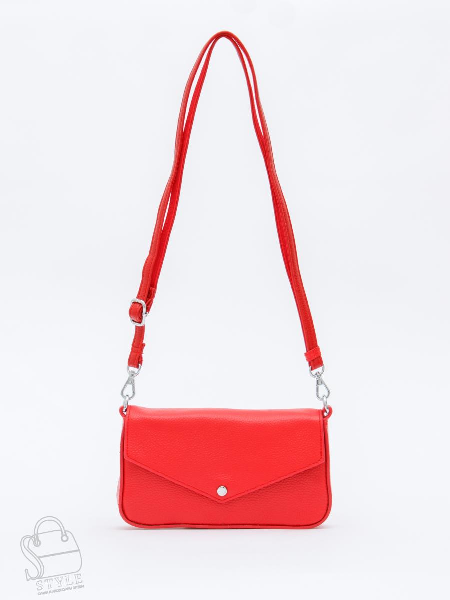 Сумка кросс-боди, выполнена из натуральной кожи. Дополнена серебристой фурнитурой.  Данная модель закрывается на клапан. Носится на плече, съемный ремень регулируется по длине. Каркас полужесткий.
