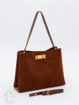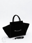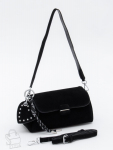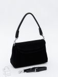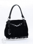 Эффектная модель, выполнена из замши. Декорирована бахромой.  Дополнена серебристой фурнитурой. Каркас полужесткий. Носится в руке за короткую ручку или на плече. В комплекте имеется съемный ремень с регулировкой длины.