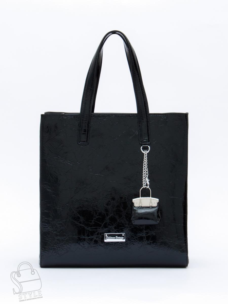 Вместительная модель, выполнена из кожи. Декорирована съемным брелоком. Дополнена серебристой фурнитурой. Данная модель закрывается на молнию, носится в руке за встроенные ручки. Или на плече, в комплекте имеется ремень с регулировкой длины. Каркас полужесткий.