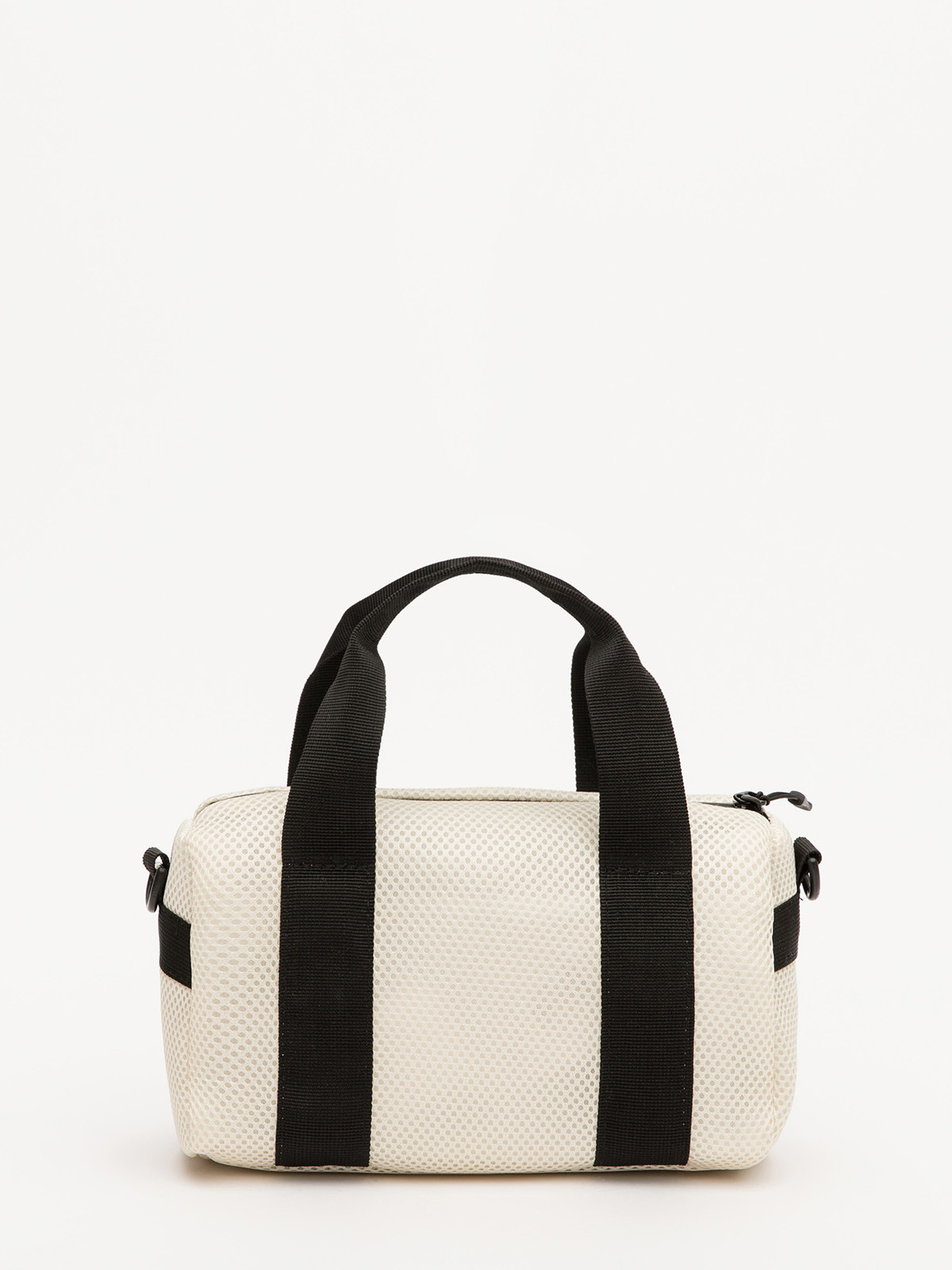Трендовая форма «бочонка» с короткими ручками и съёмным регулируемым ремнём из рельефной стропы сочетает стиль и практичность.
