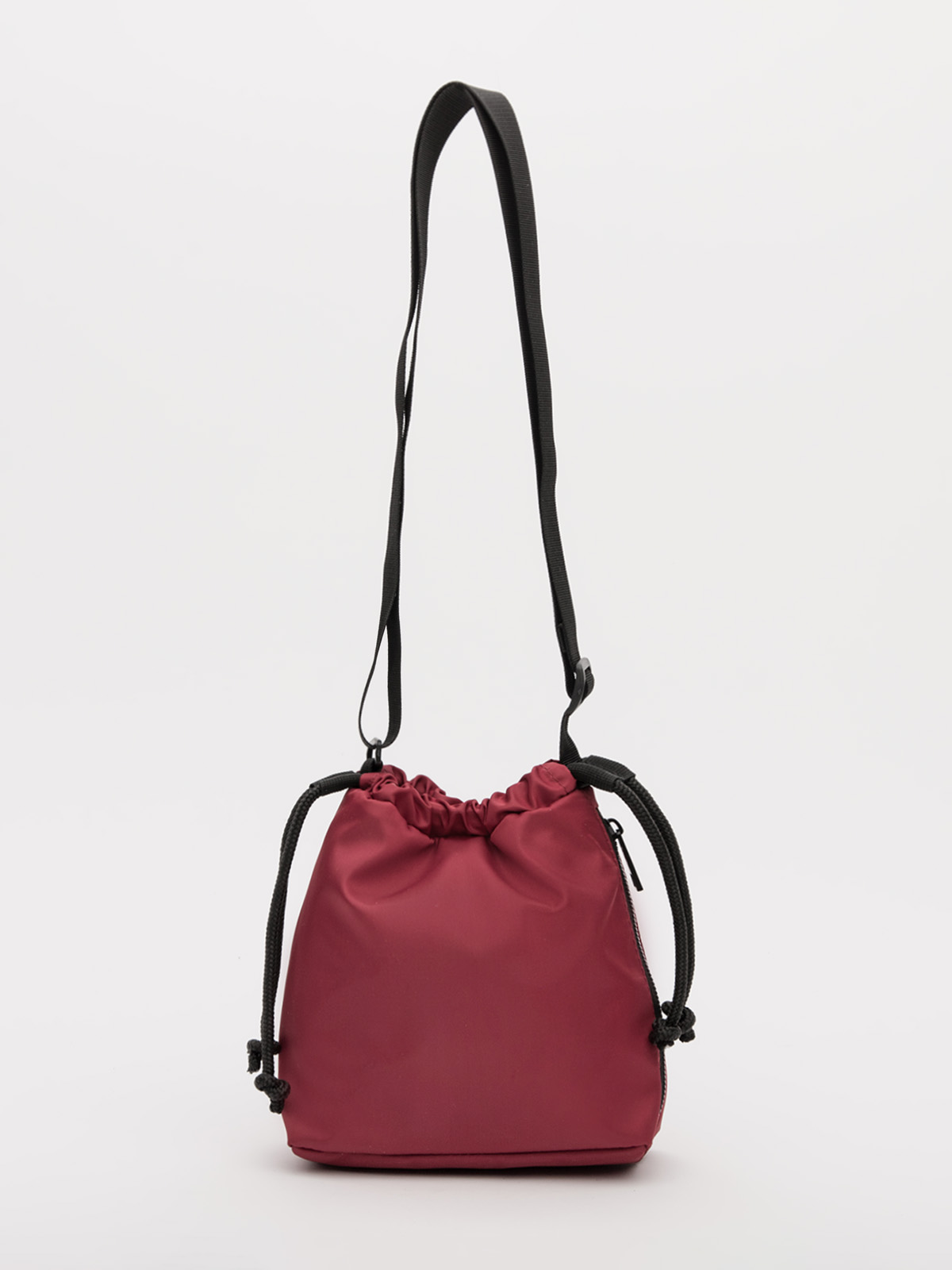 Лёгкий и компактный, этот аксессуар из практичного твила легко трансформируется с помощью шнуровки — от объёмного мешка до аккуратного прямоугольника. Застёжка на кнопку надёжно фиксирует содержимое, а дополнительные карманы на молнии помогают организовать даже мелочи.
