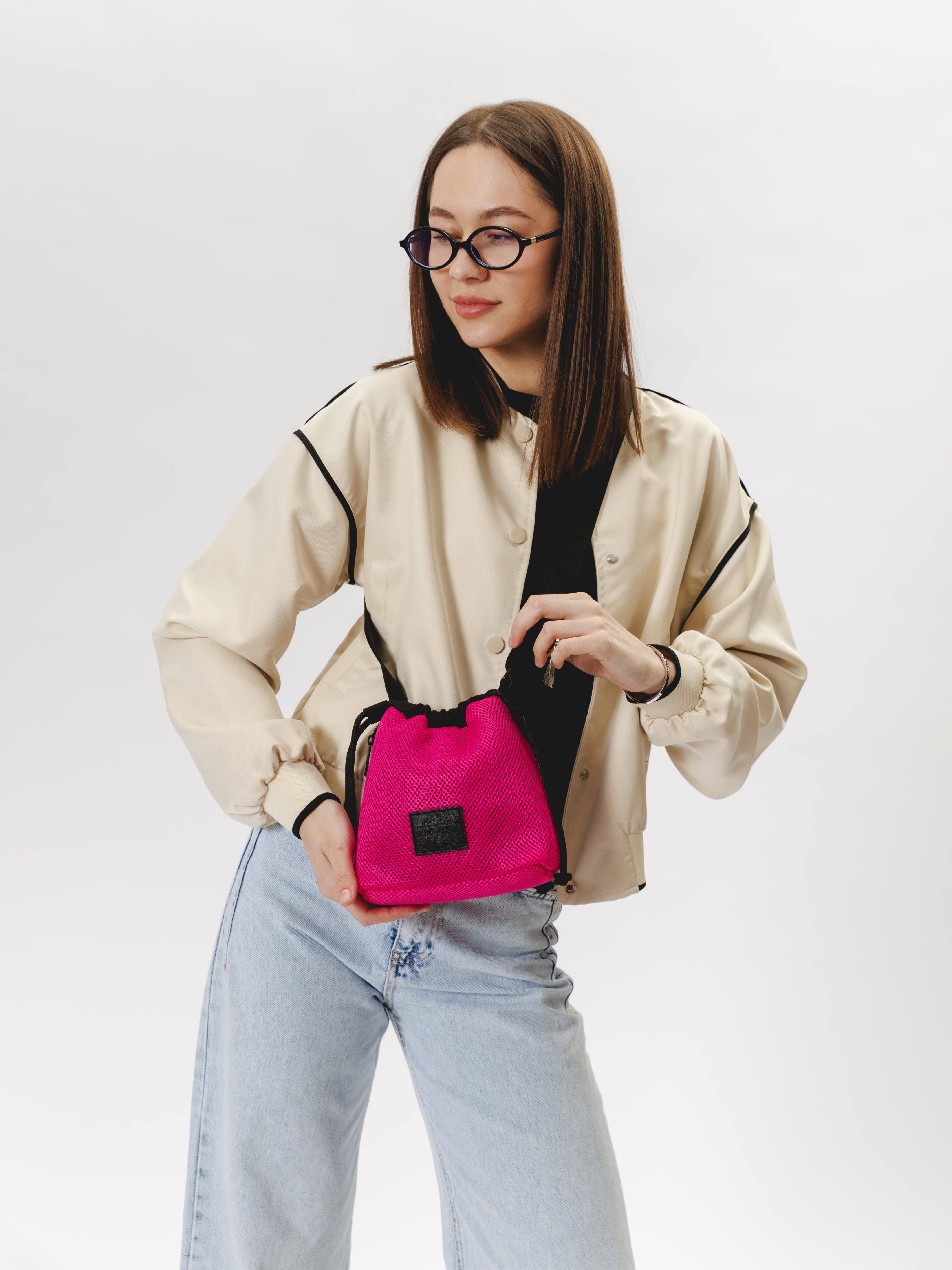 Лёгкая 3D-сетка в сочном оттенке фуксии добавляет образу воздушности. Компактная, но вместительная — идеально подходит для прогулок, пляжа и городских свиданий.