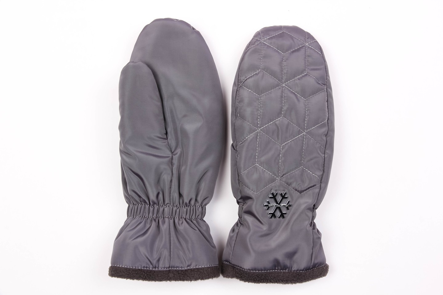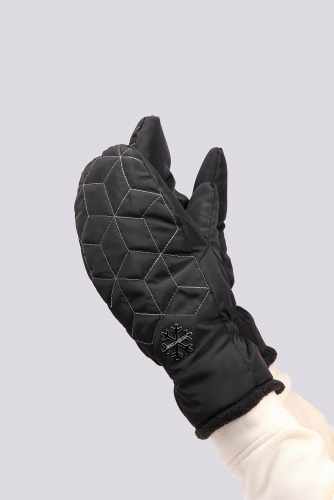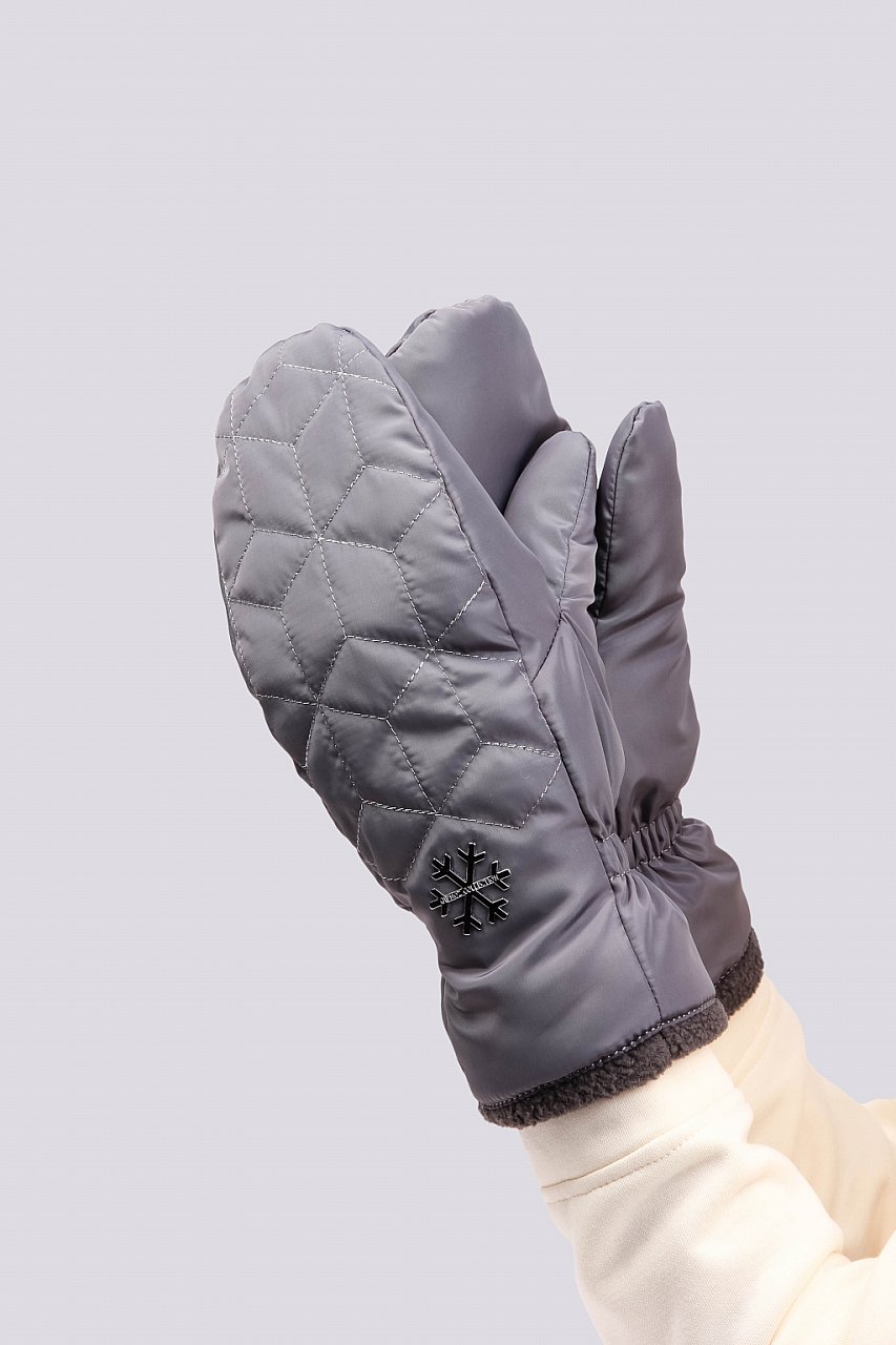 графит Теплые женские варежки из непромокаемой ткани - отличная защита морозной зимой. Модель выстрочена серебряной нитью, дополнена оригинальным декором, что создает неповторимый дизайн. Подкладка из мягкого флиса, на уровне запястья - резинка, модель уютна и комфортна в носке. Состав материалов: 100% полиэстер. Утеплитель: термофин, плотность 100. Температурный режим: до -20