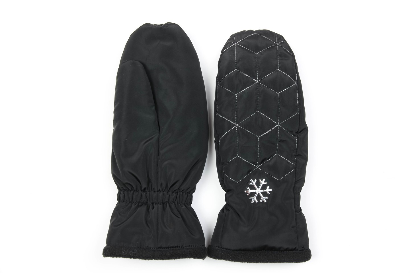 черный Теплые женские варежки из непромокаемой ткани - отличная защита морозной зимой. Модель выстрочена серебряной нитью, дополнена оригинальным декором, что создает неповторимый дизайн. Подкладка из мягкого флиса, на уровне запястья - резинка, модель уютна и комфортна в носке. Состав материалов: 100% полиэстер. Утеплитель: термофин, плотность 100. Температурный режим: до -20